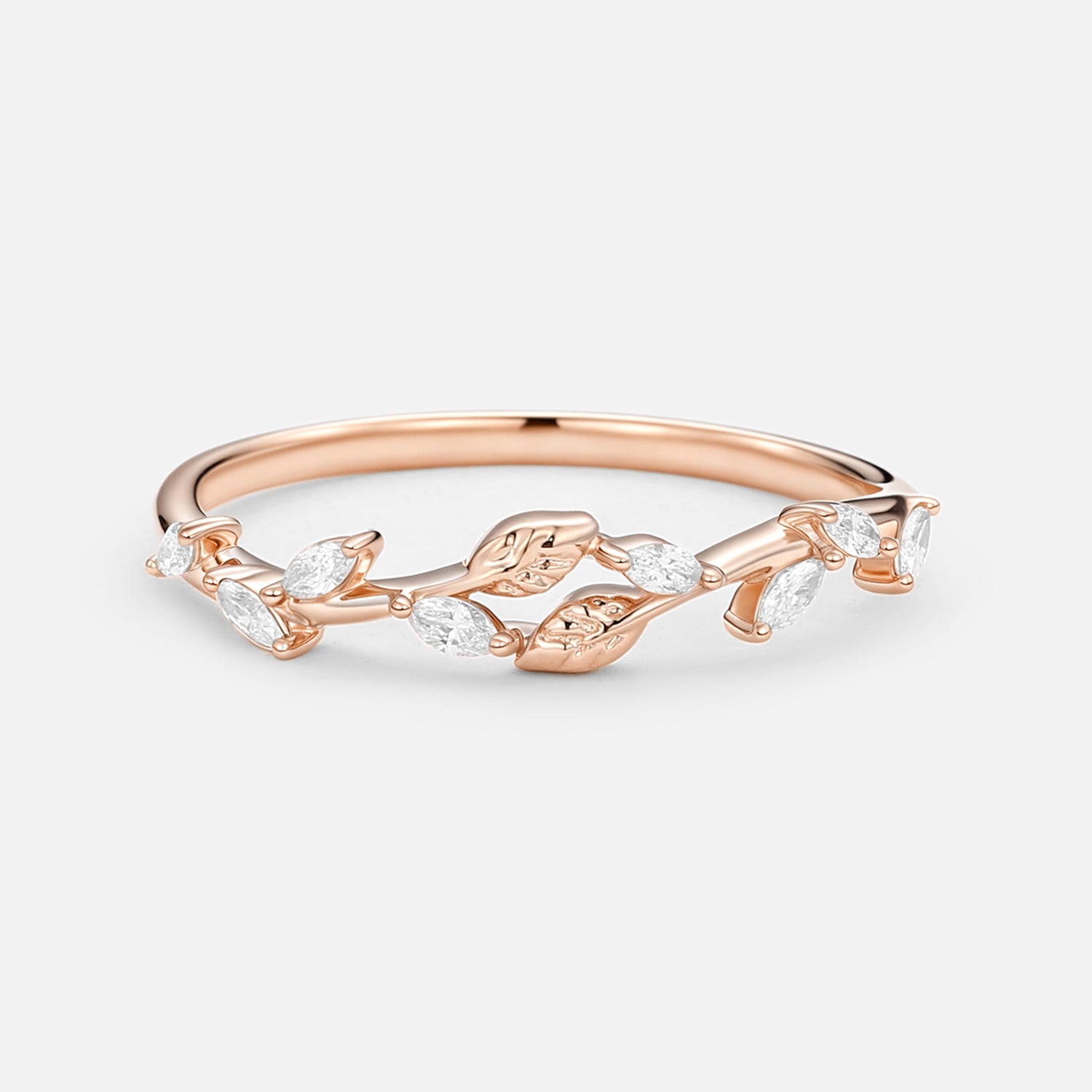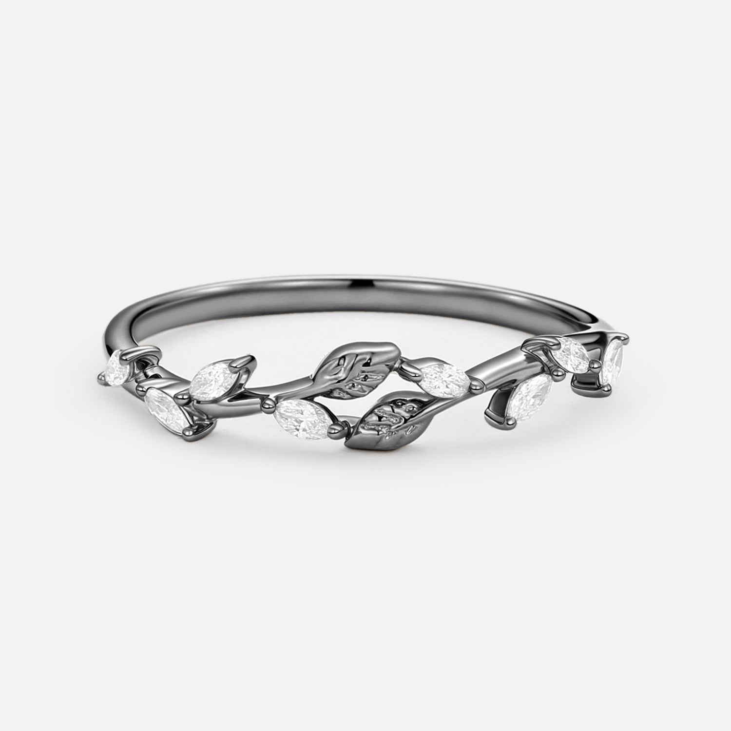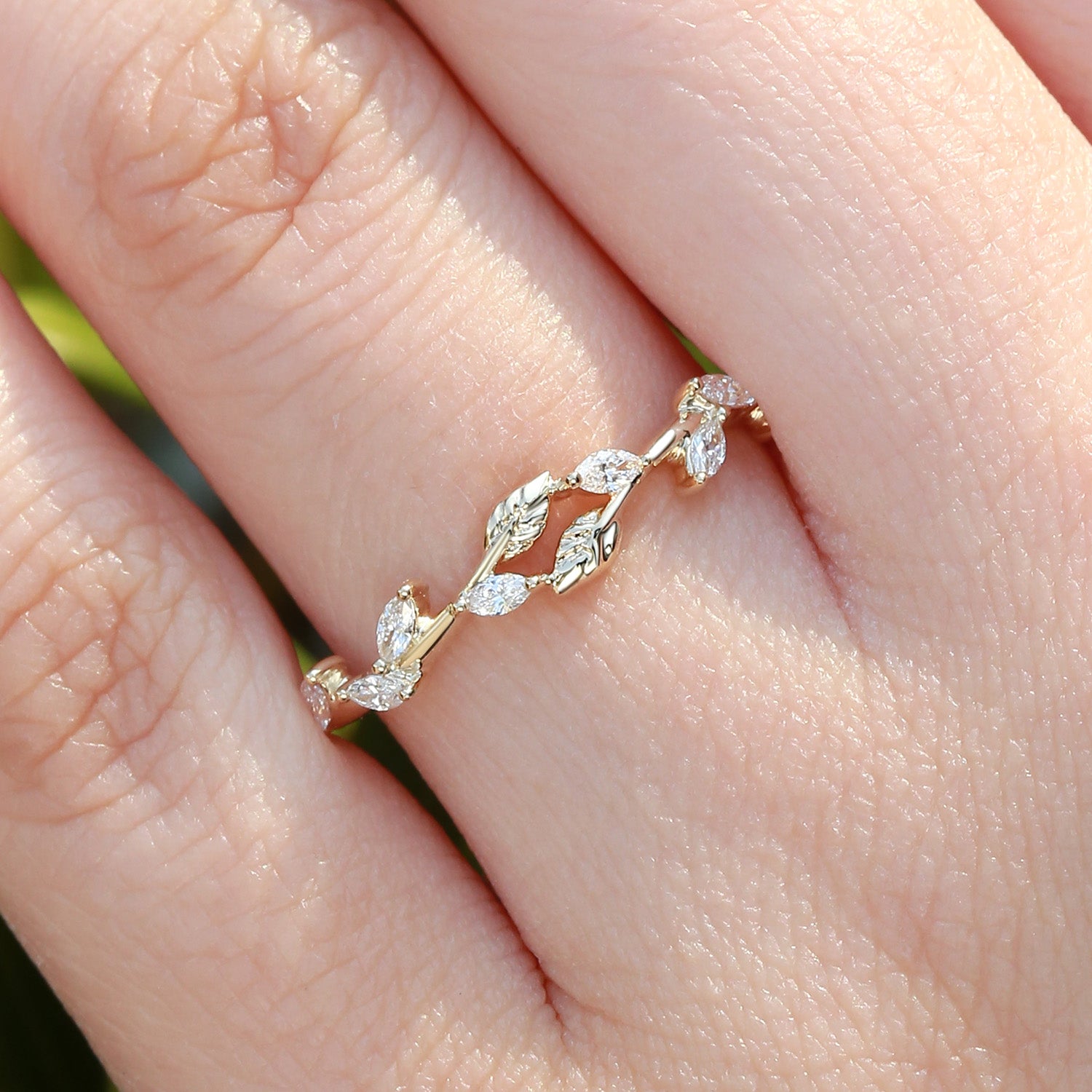 Nature Inspired Leafy Moissanite Gold Wedding Band