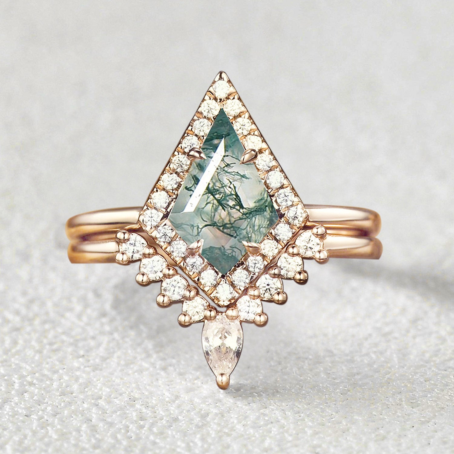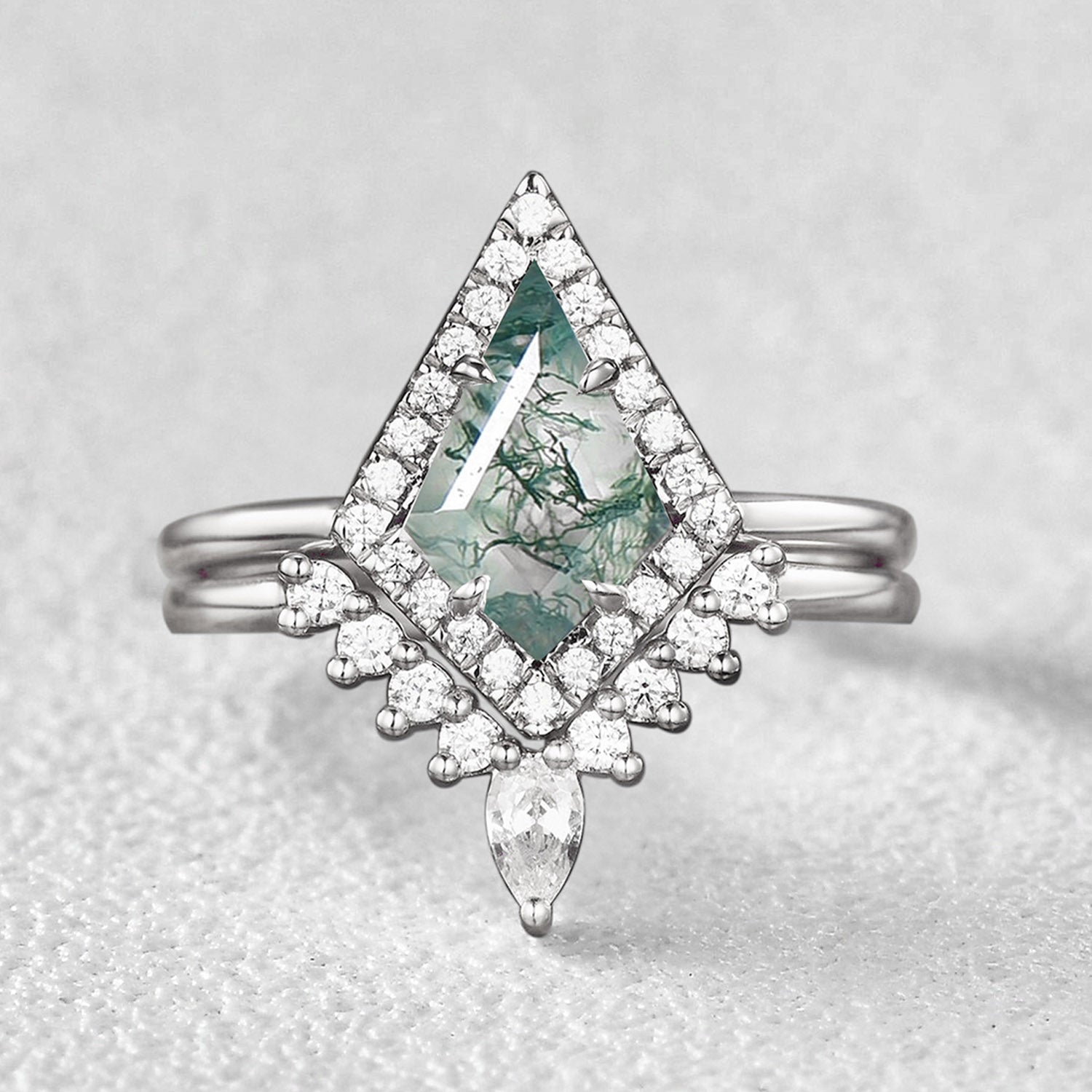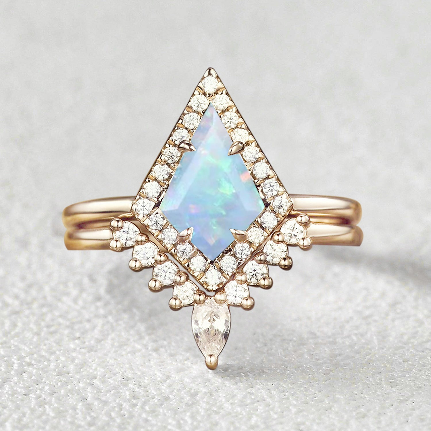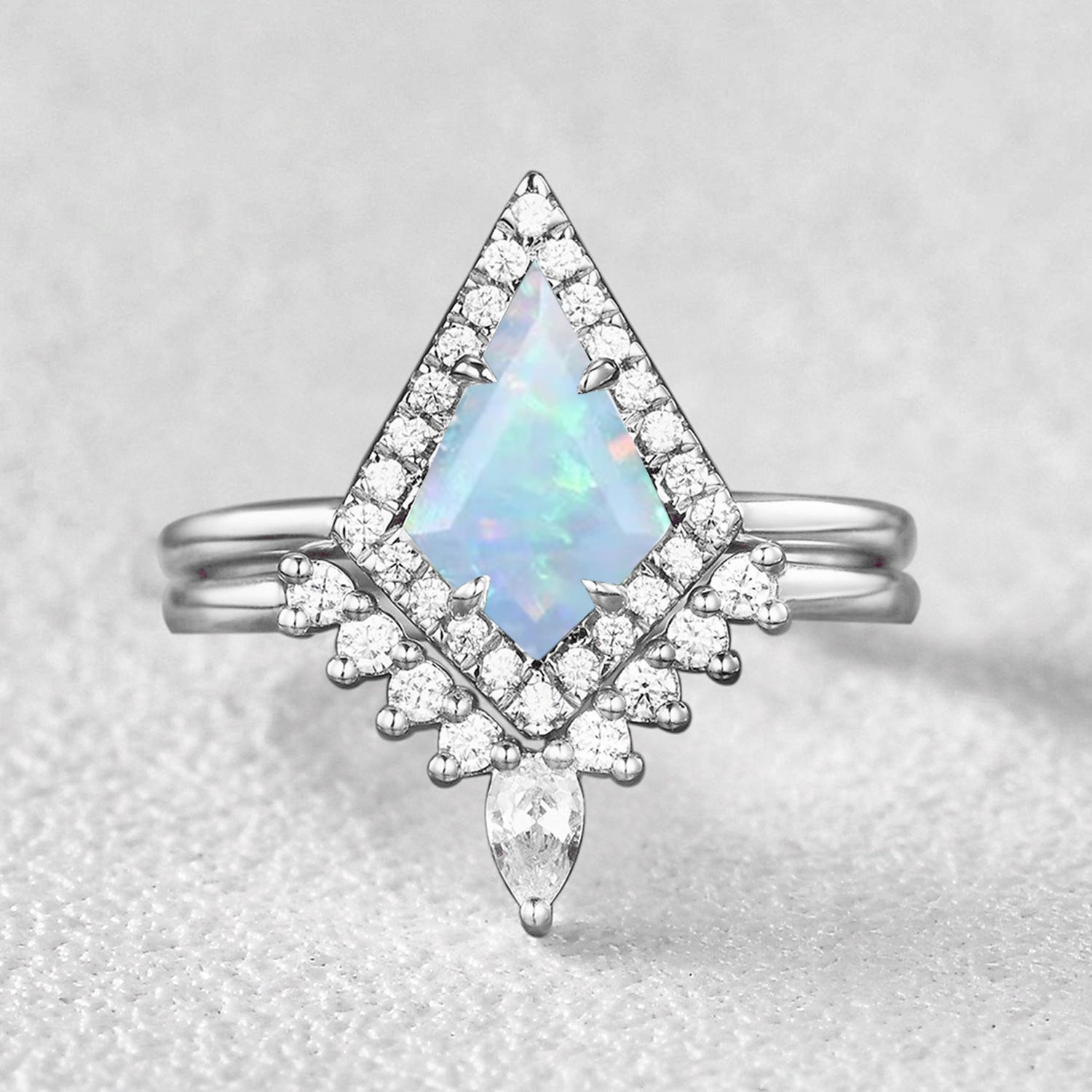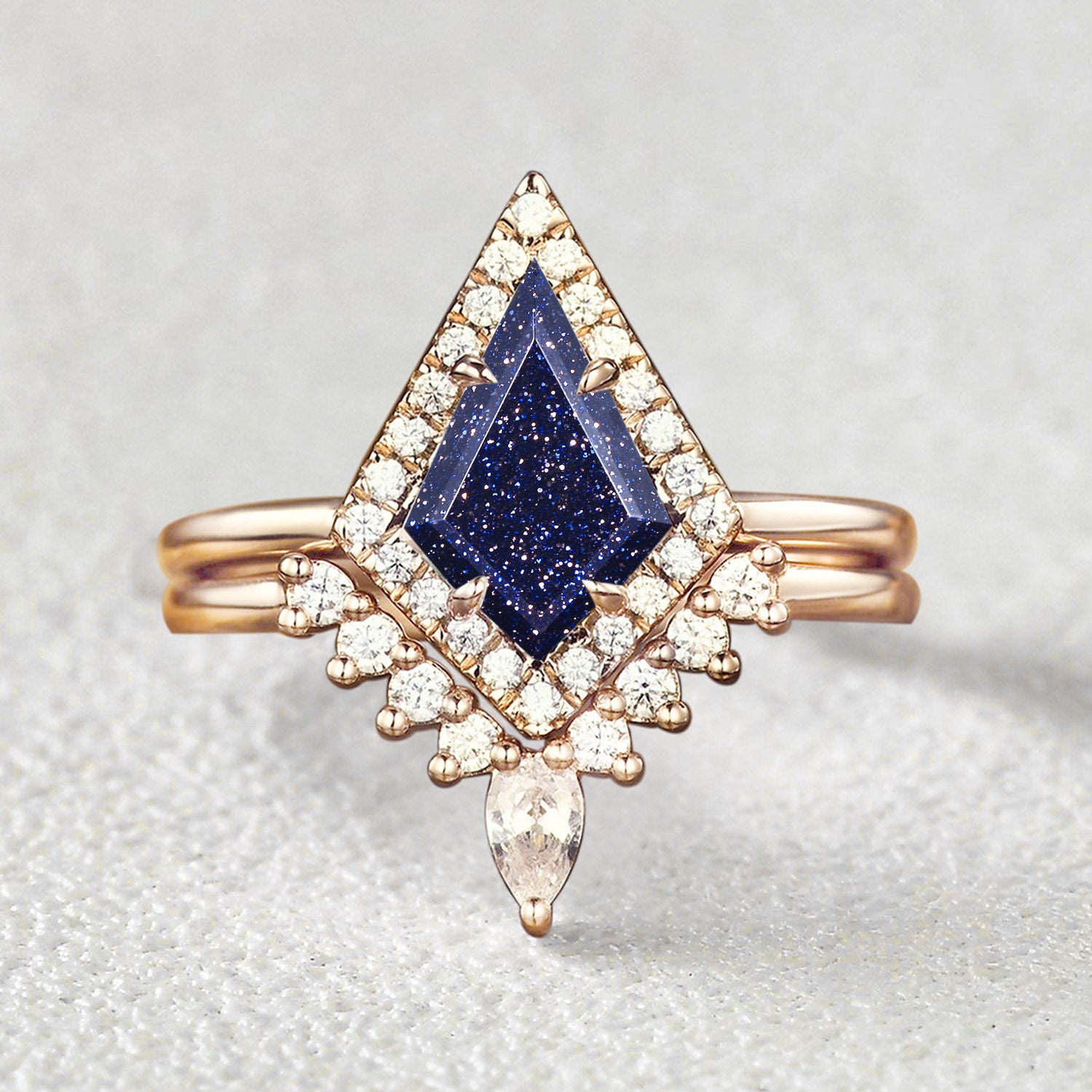 Blue Sandstone Kit Cut Halo Engagement Ring Set 2pcs