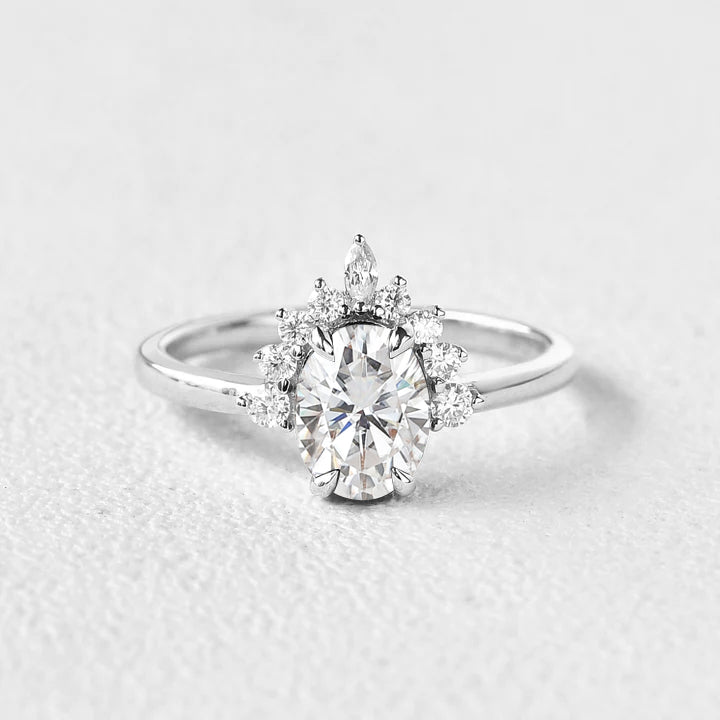 Oval Cut Moissanite 4 Prongs White Gold Ring