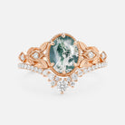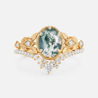 Oval Cut Moss Agate Leafy Gold Ring Set 2pcs - Selene