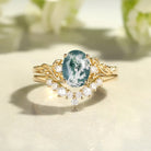 Oval Cut Nature Moss Agate Leafy Gold Ring Set 2pcs - Clover