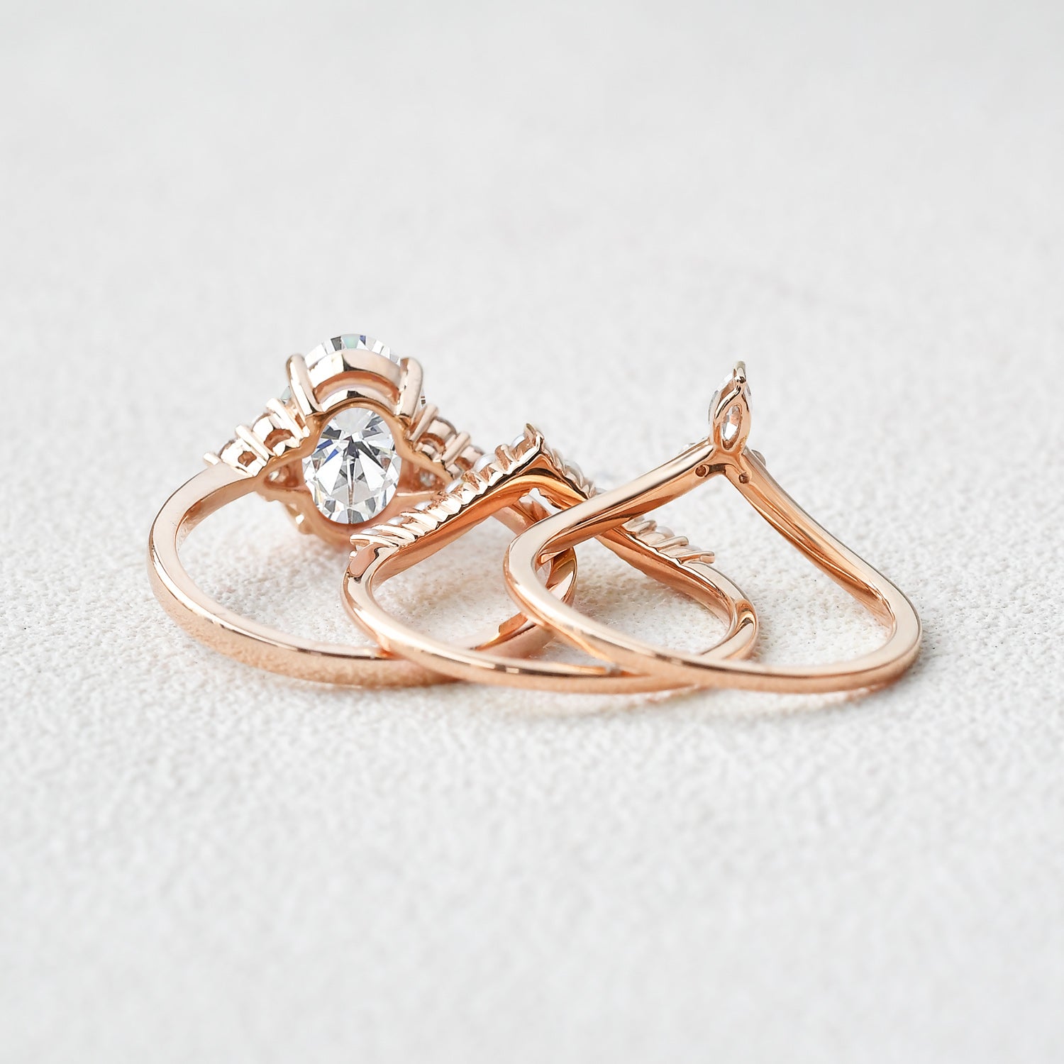 Felicegals 2.0ct Oval Moissanite Pearl-fect Vintage Gold Ring Set 3pcs Moissanite Stacking Curved Custom Ring Gift for Her