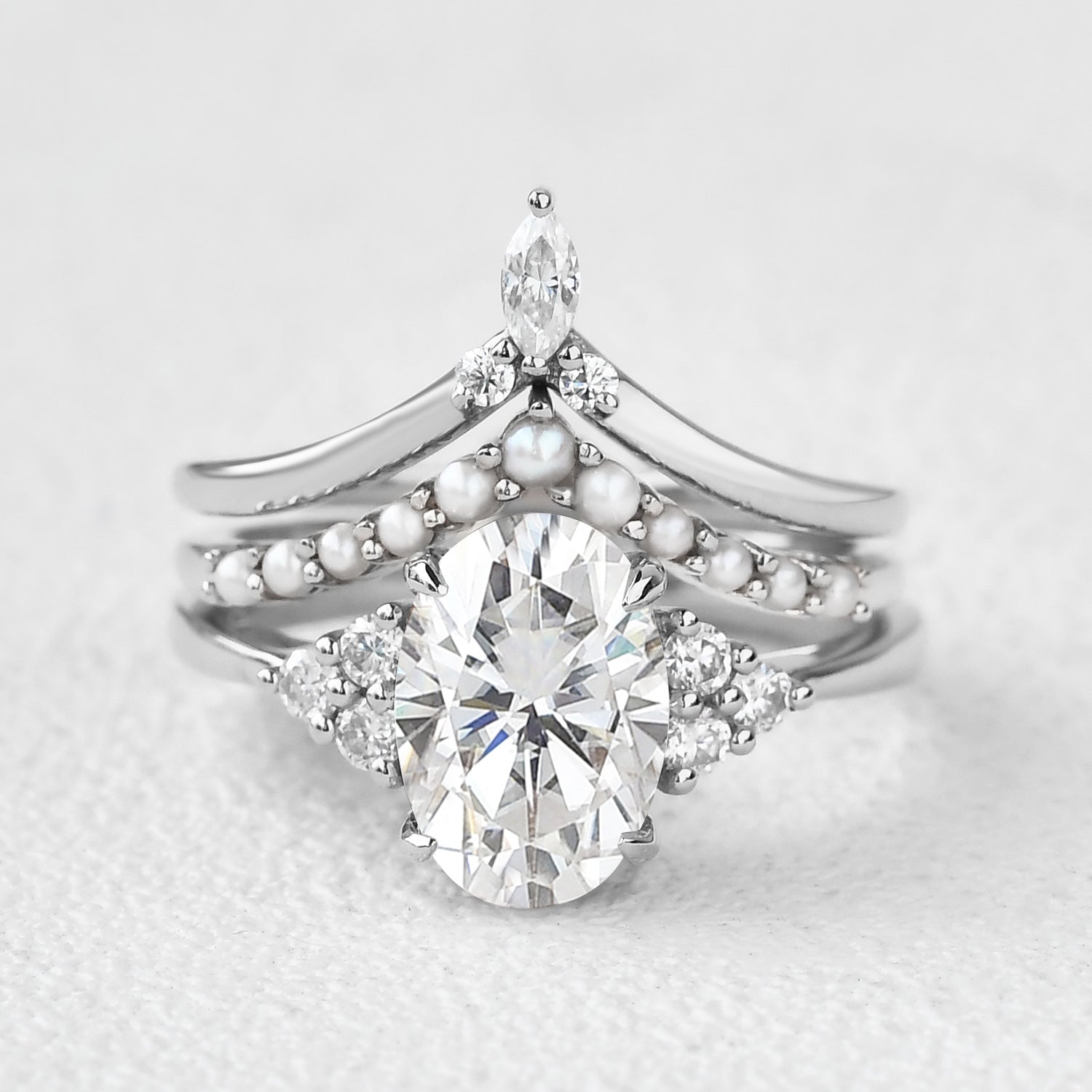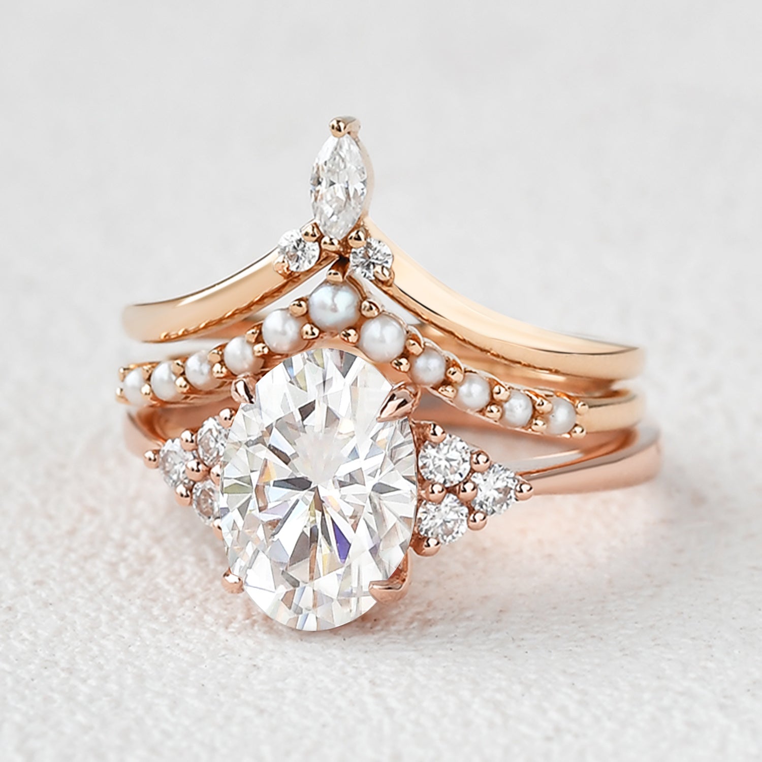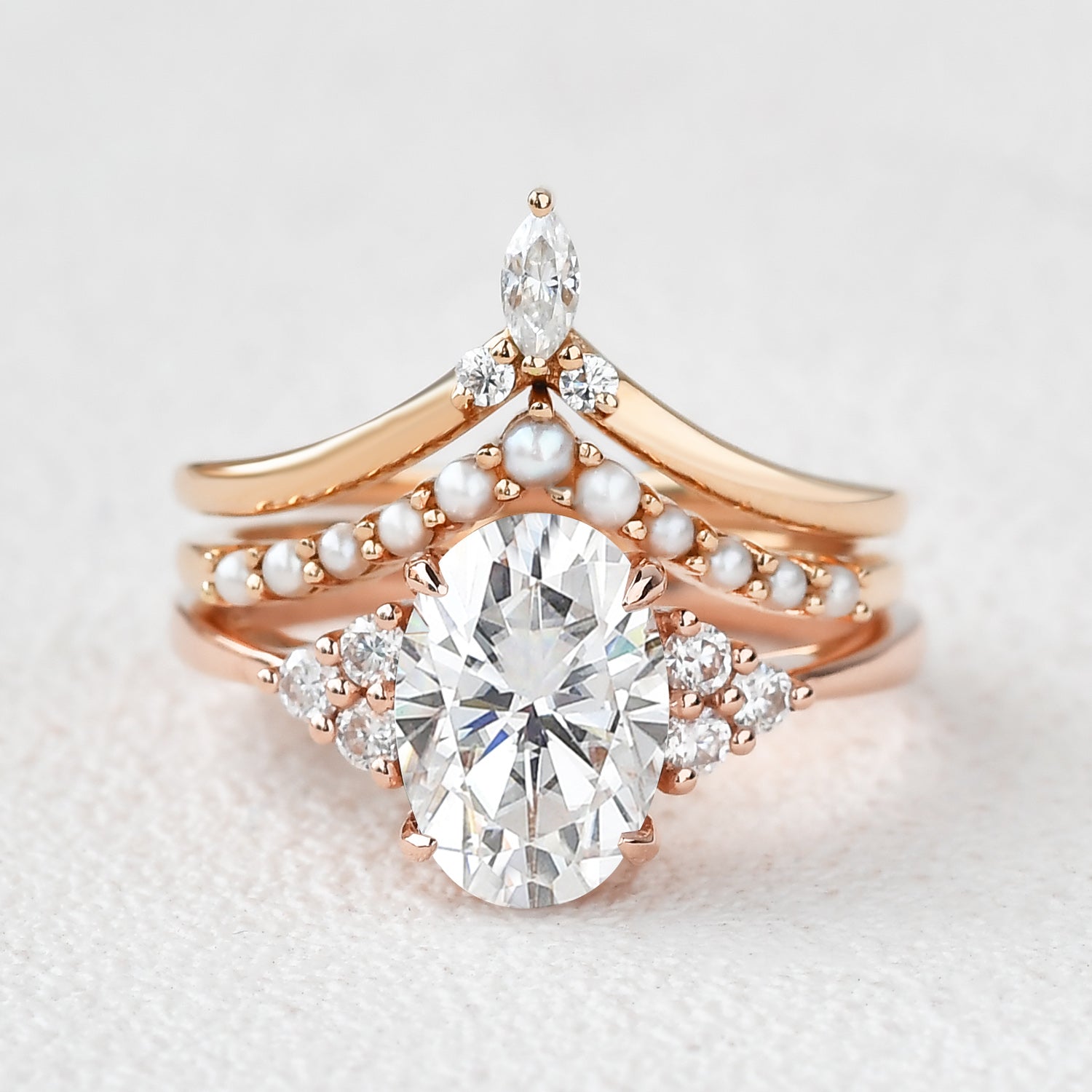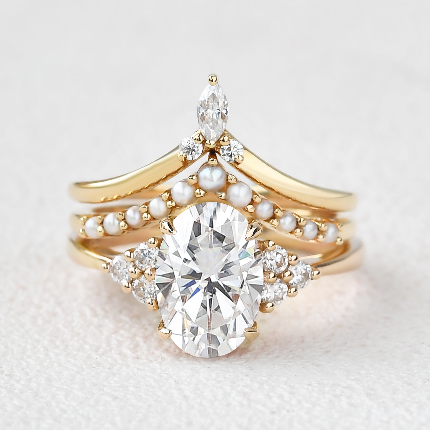 Oval Moissanite Pearl-fect Vintage Gold Ring Set 3pcs