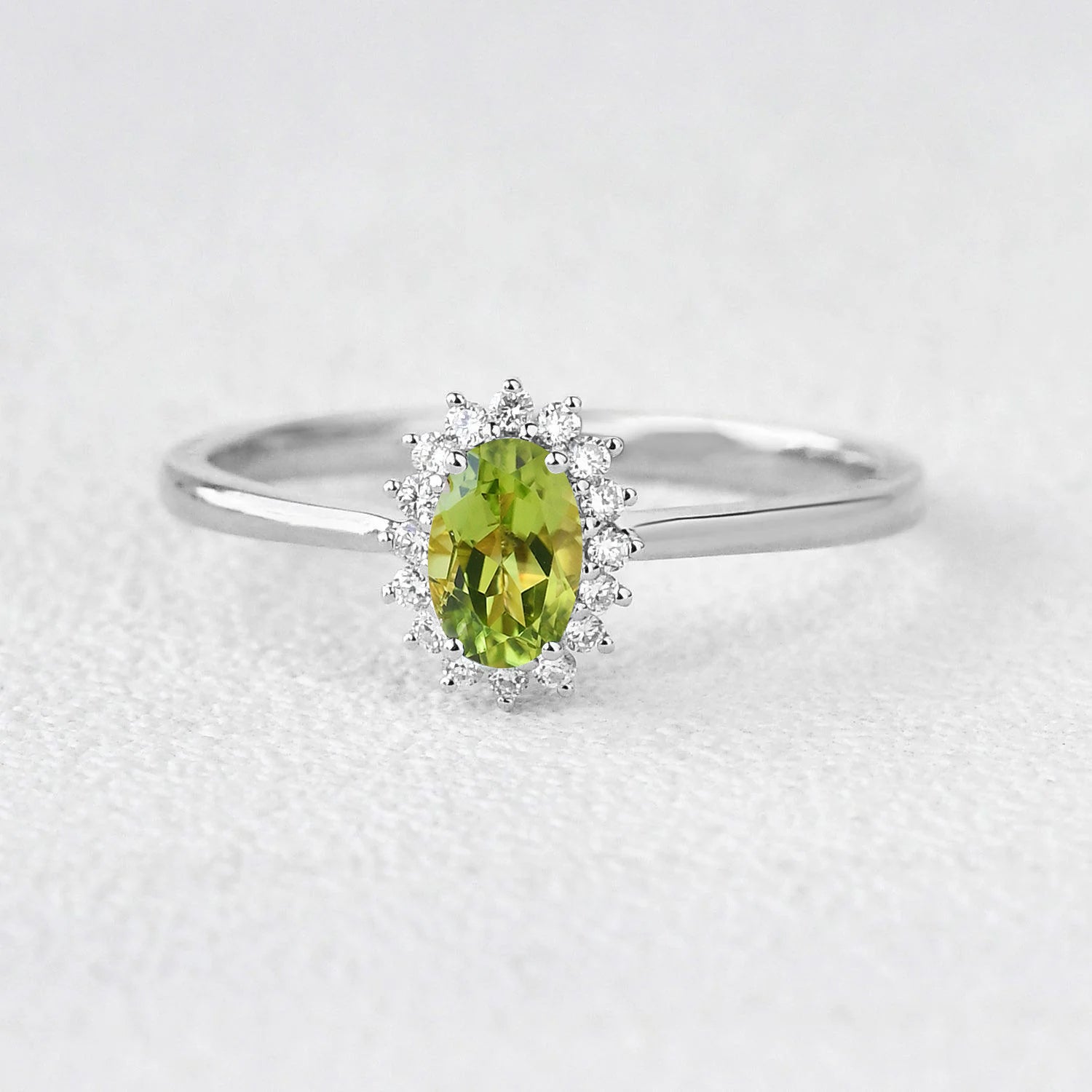Felicegals Unique Oval 4*6mm Peridot Engagement Ring 0.10ct Moissanite Accents White Gold Ring Classic Bridal Ring Anniversary Gift For Her