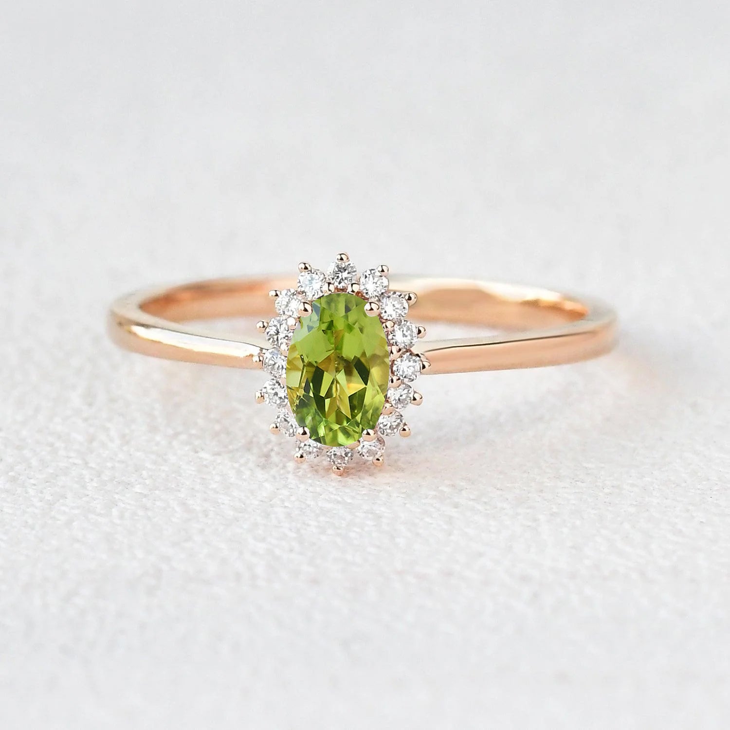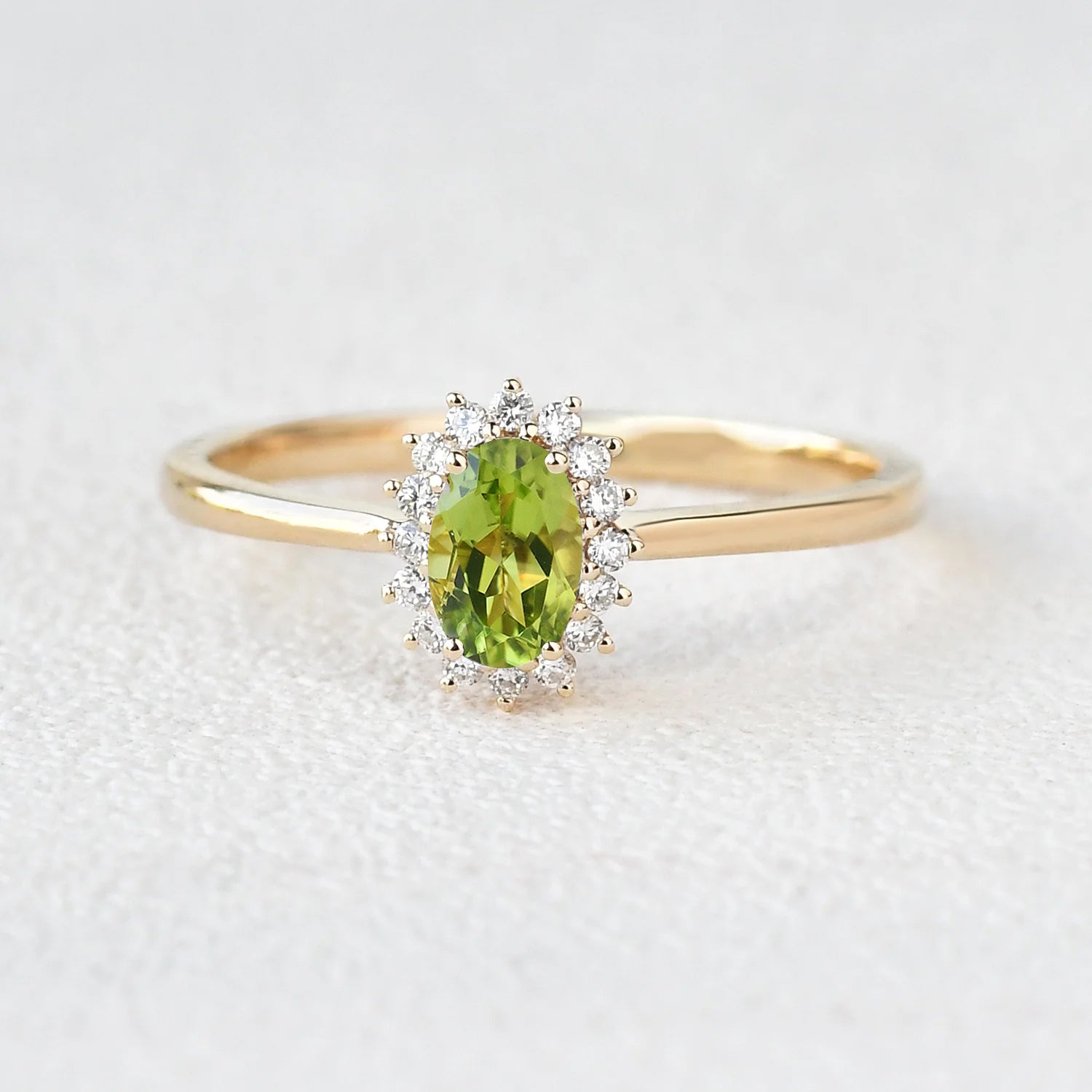 Oval Peridot & Moissanite Halo Engagement Ring