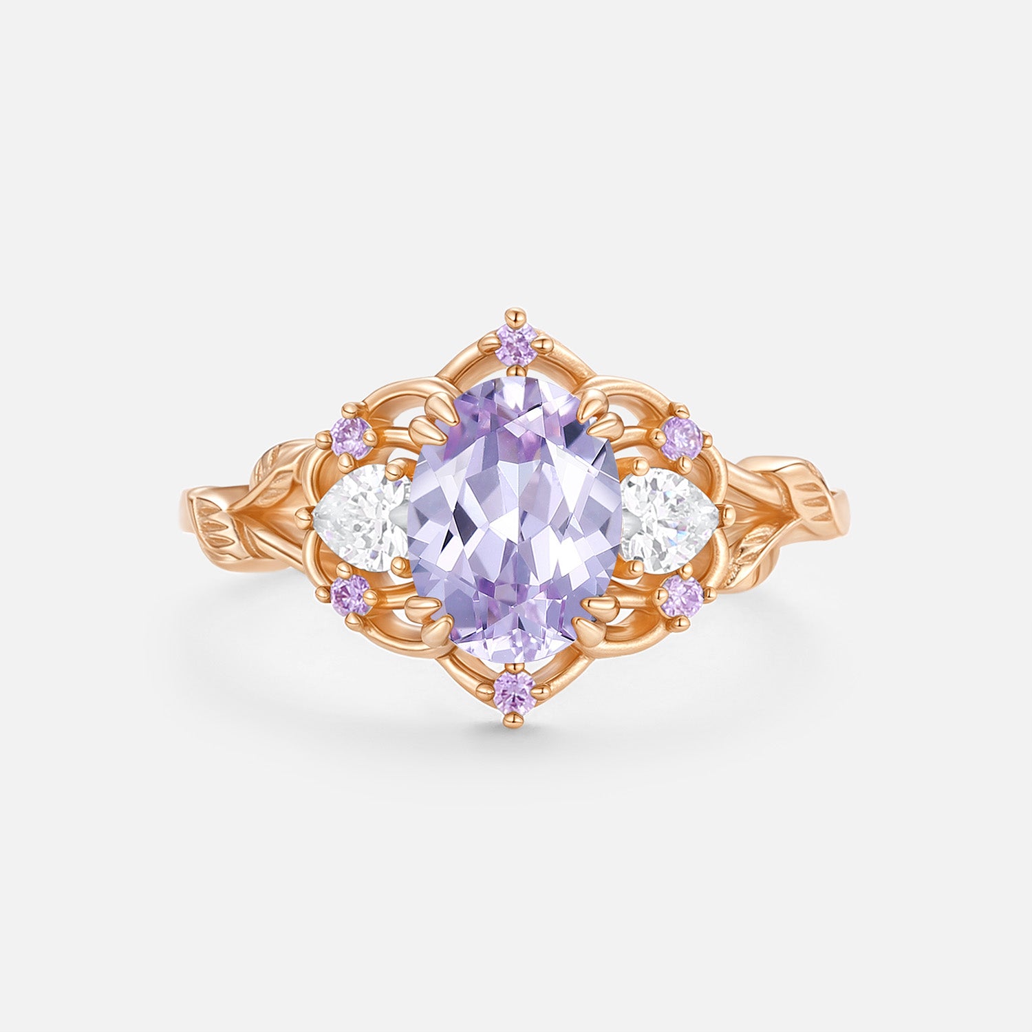 Oval Vintage Lab Lavender Sapphire Engagement Ring - Serena