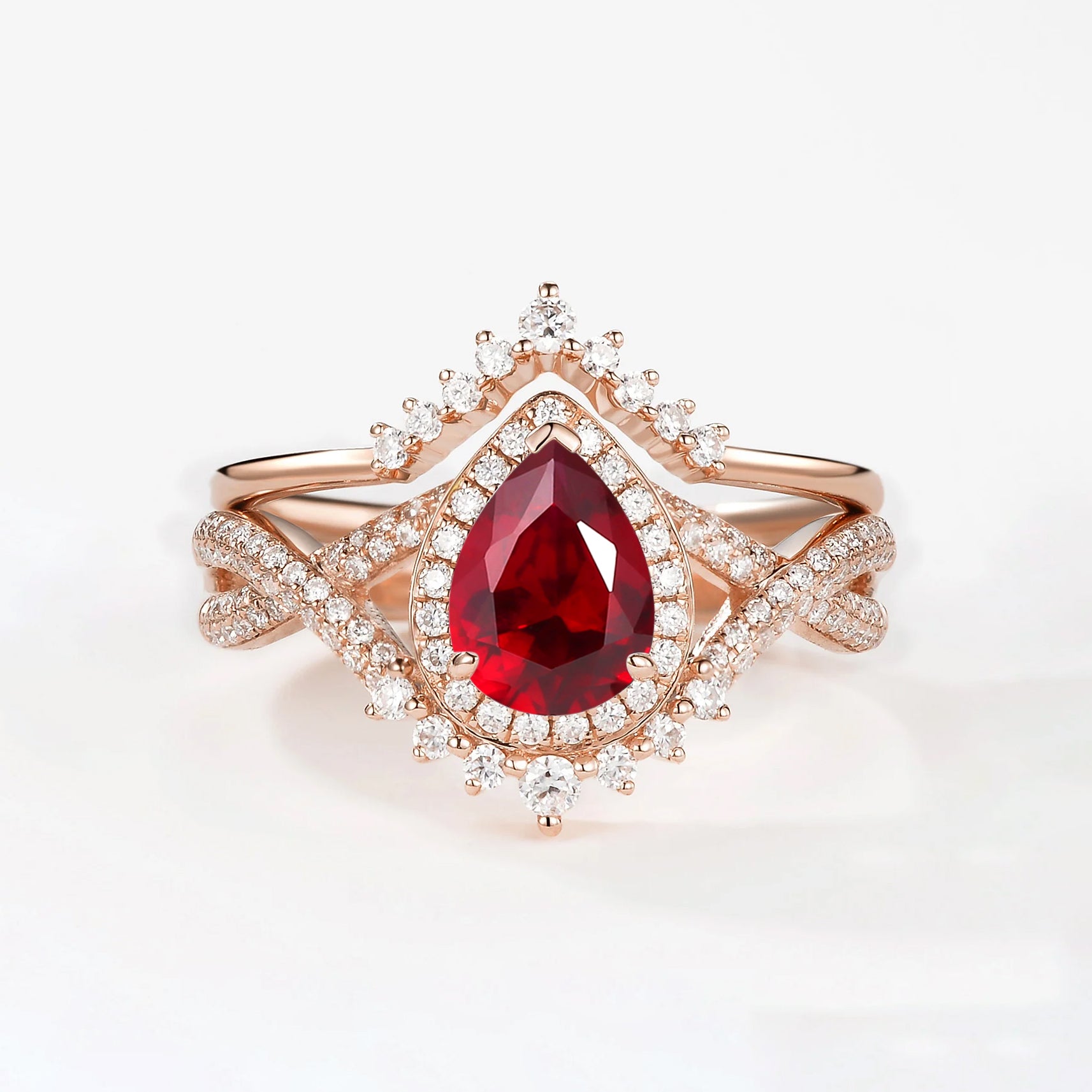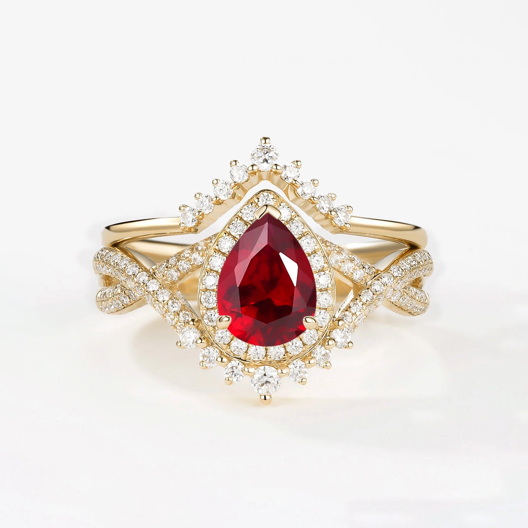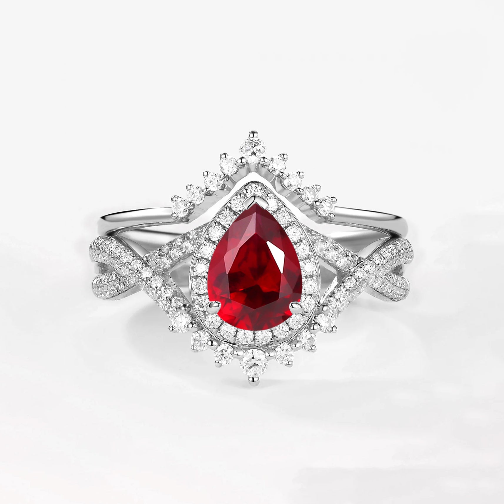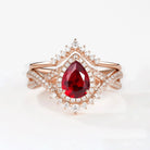 Pear Cut Lab Ruby Halo Infinity Ring Set 2pcs - Valentina