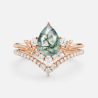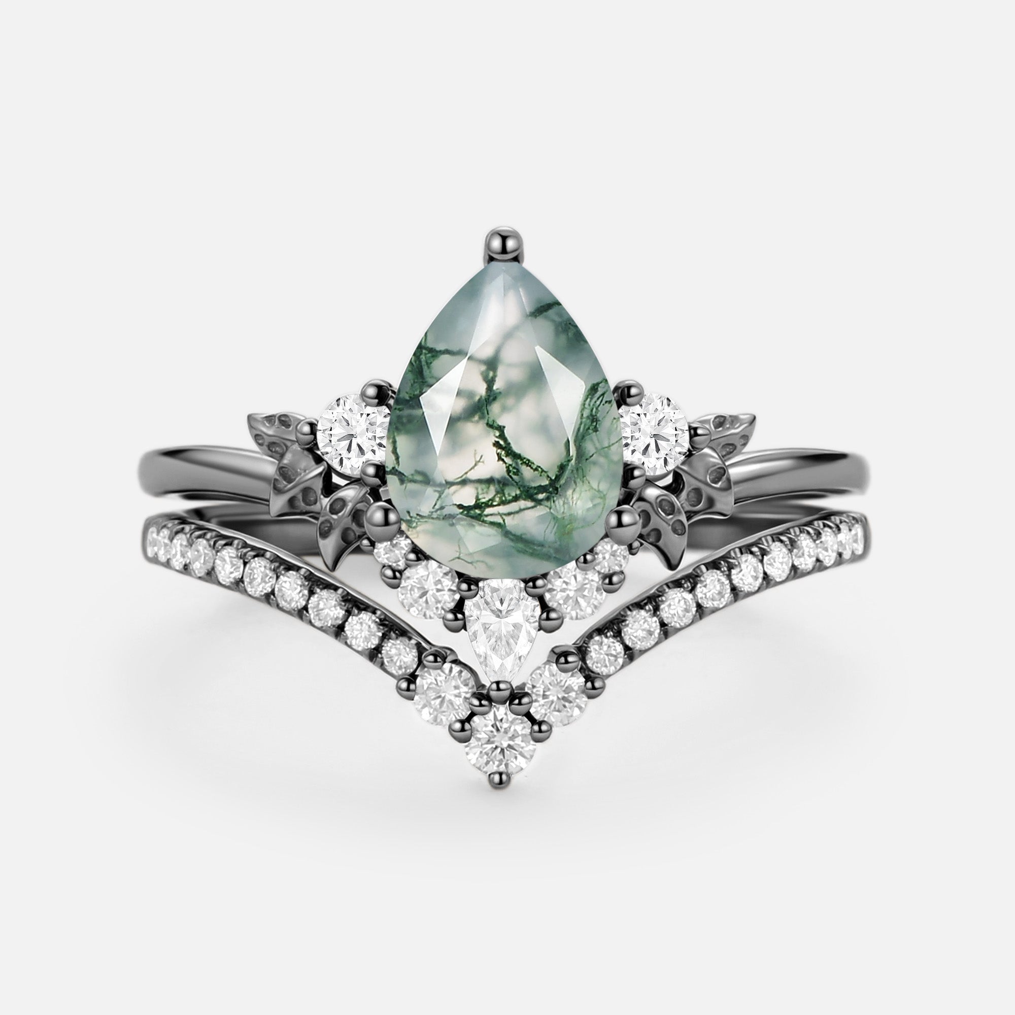 Pear Cut Moss Agate Leafy Ring Sets 2pcs - Mauve