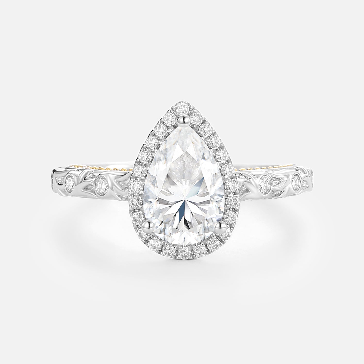 Pear Moissanite Vintage Engraved Halo Engagement Ring - Lavinia