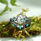 Absolutely in love with these rings! The pear - shaped moss agate is stunning, and the vintage, leafy design with teal accents is exactly what I was looking for. Great quality.
