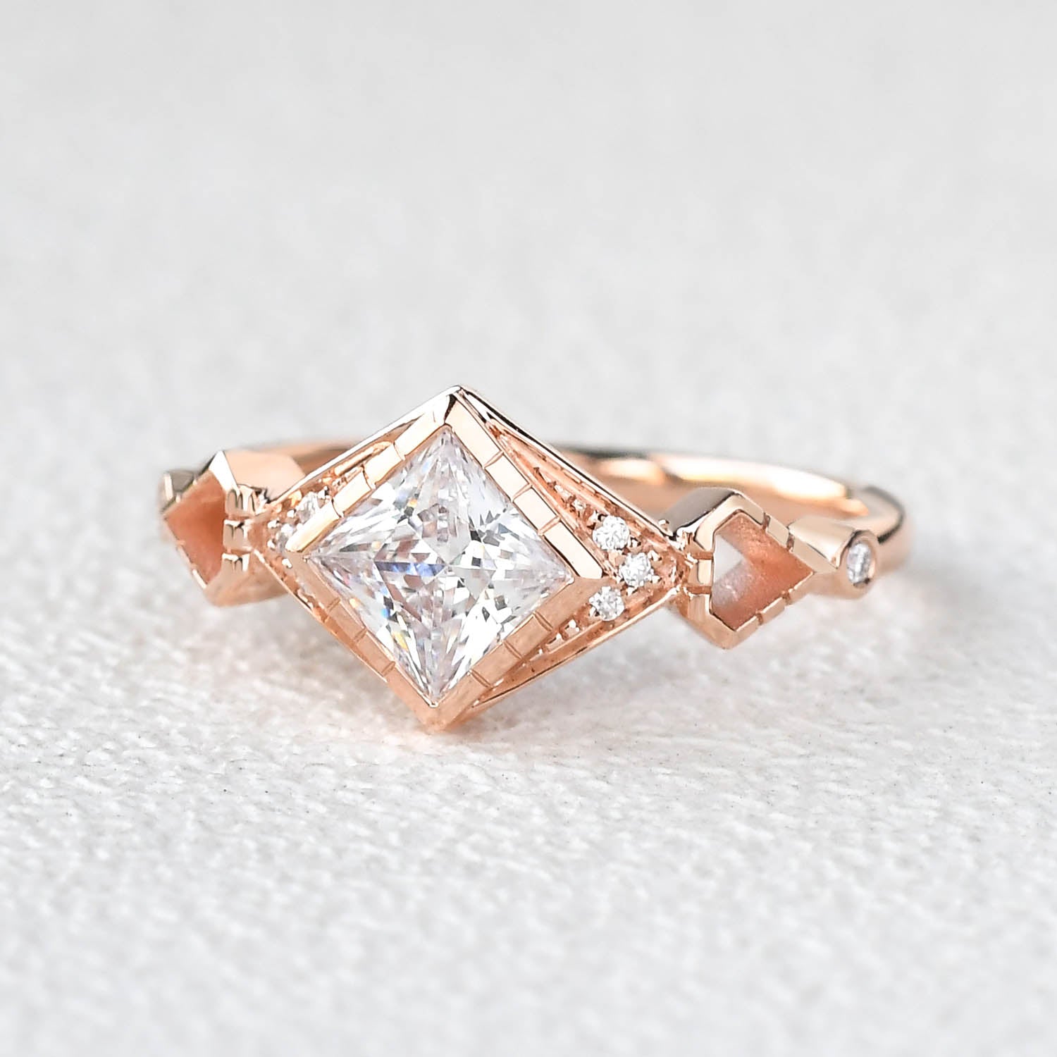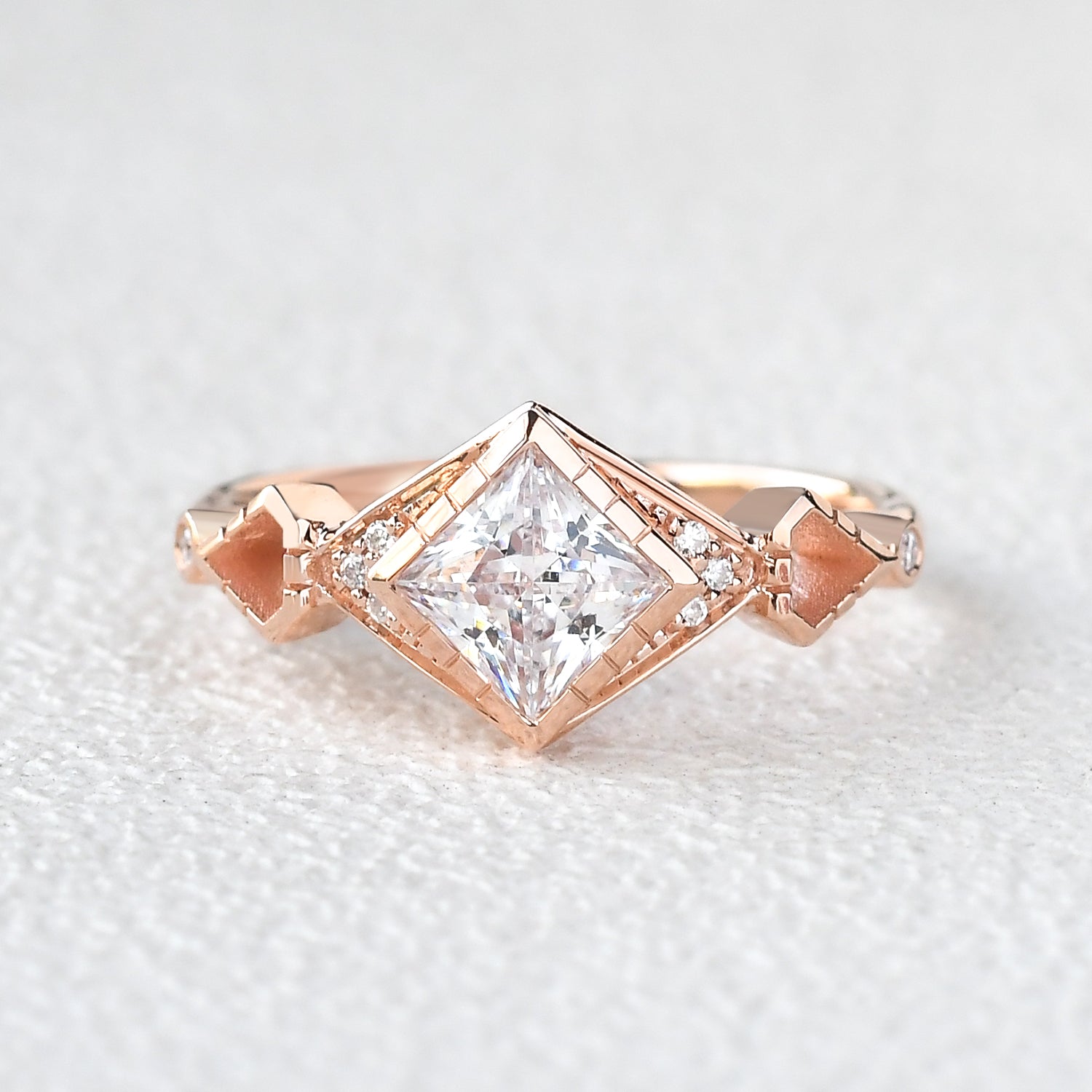 Felicegals 4mm Princess Cut Moissanite Rose Gold Ring Moissanite Milgrain Ring Vintage Ring Anniversary Gift