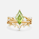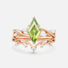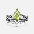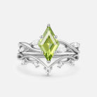 Rhombus Cut Peridot Twist Engagement Ring Set 2pcs - Gladys