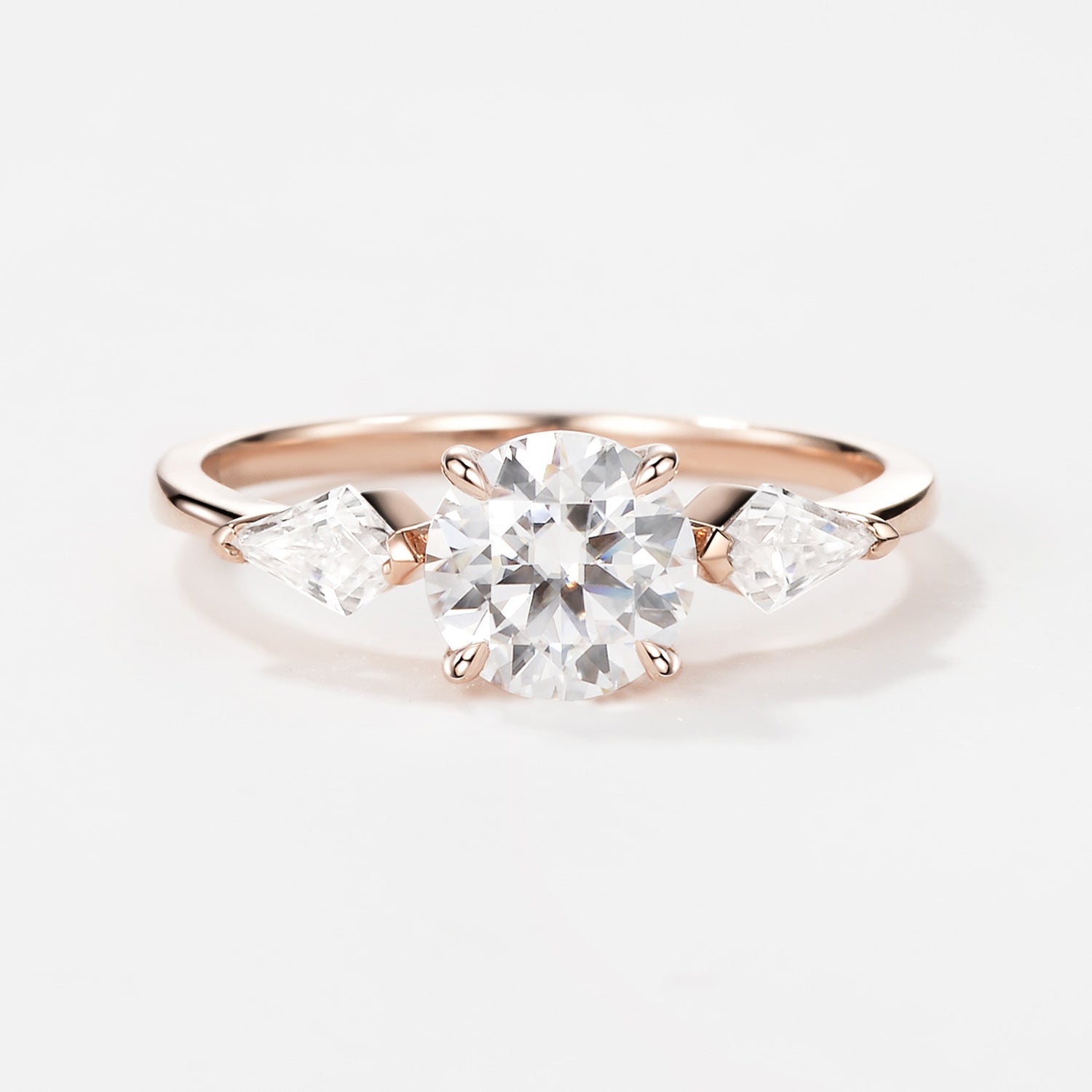 Felicegals 1.0ct Roundness Moissanite Rose Gold Engagement Ring Three Stones Ring Solitaire Women Bridal Anniversary Gift