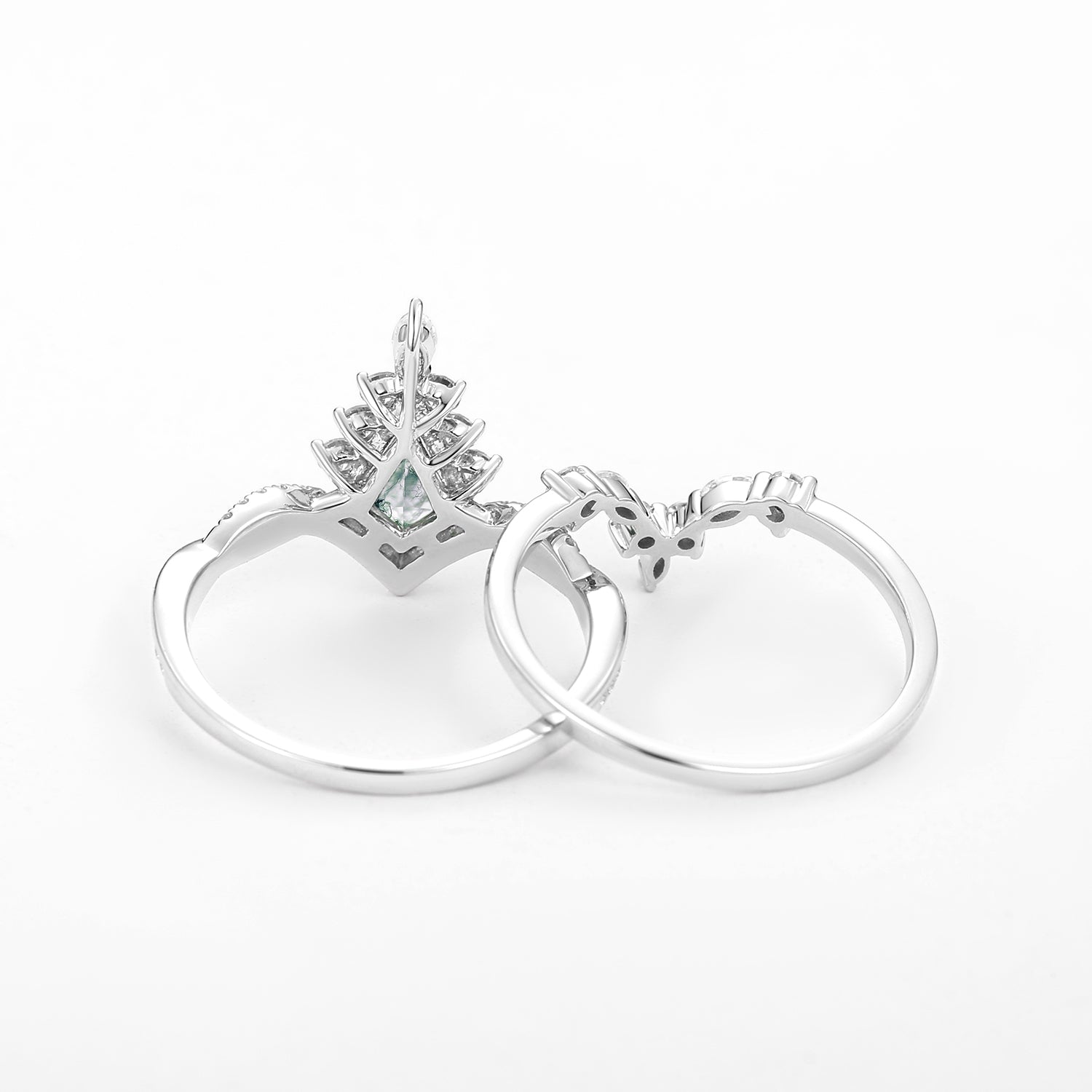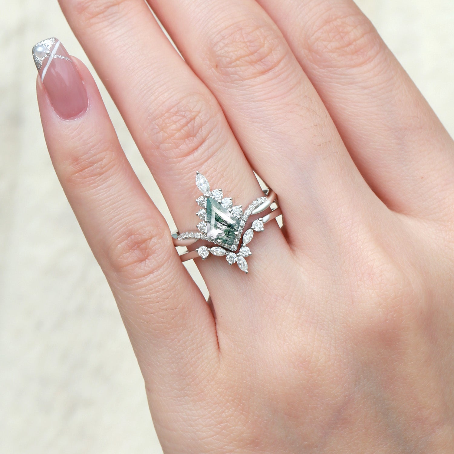 Unique Moss Agate Kite Shape Engagement Ring Sets 2pcs