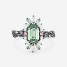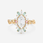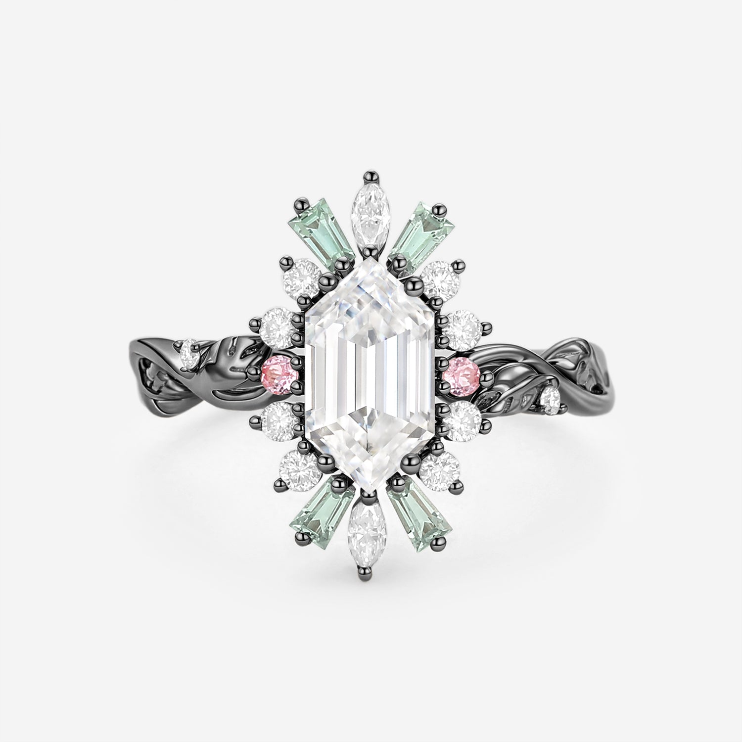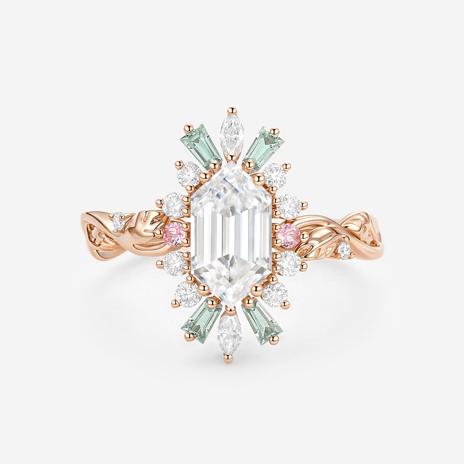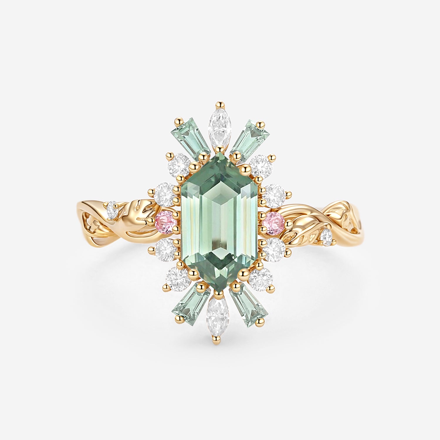 Vintage Halo Lab Green Sapphire Elongated Hexagon Engagement Ring - Artemis
