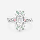 - Colourless Moissanite & Lab Green Sapphire & Lab Pink Sapphire Accents