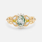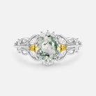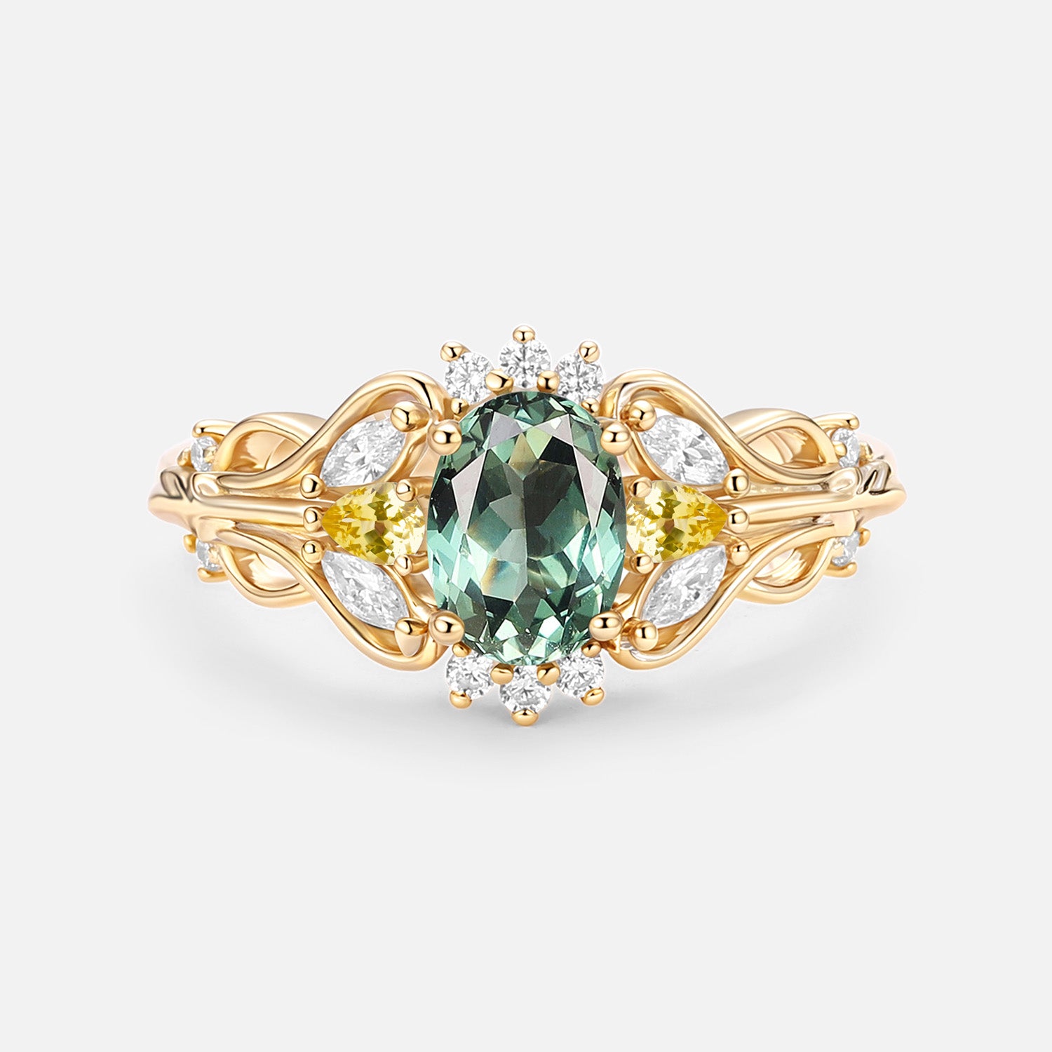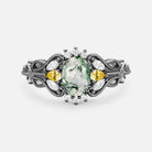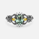Vintage Oval Cut Cluster Lab Green Sapphire Engagement Ring - Patina