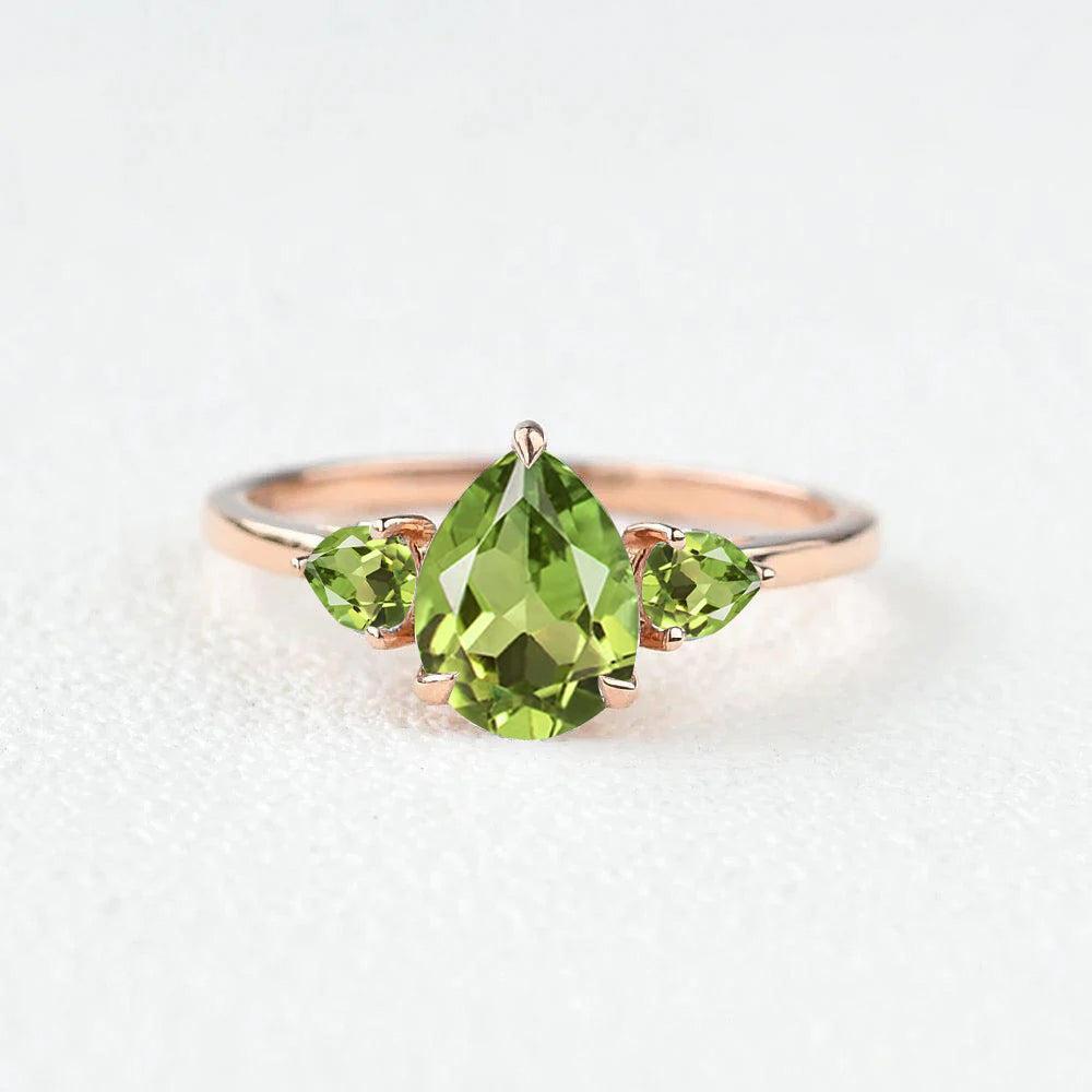 Felicegals Pear Shaped Peridot Engagement Ring Three Stones Rose Gold Ring Antique Wedding Band Women Gift