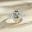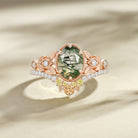 Felicegals Oval Moss Agate White Gold Leafy Ring Set 2pcs Moss Agate Engagement Ring Stacking Wedding Ring Anniversary Promise Women Gift