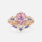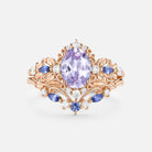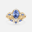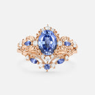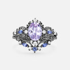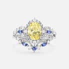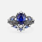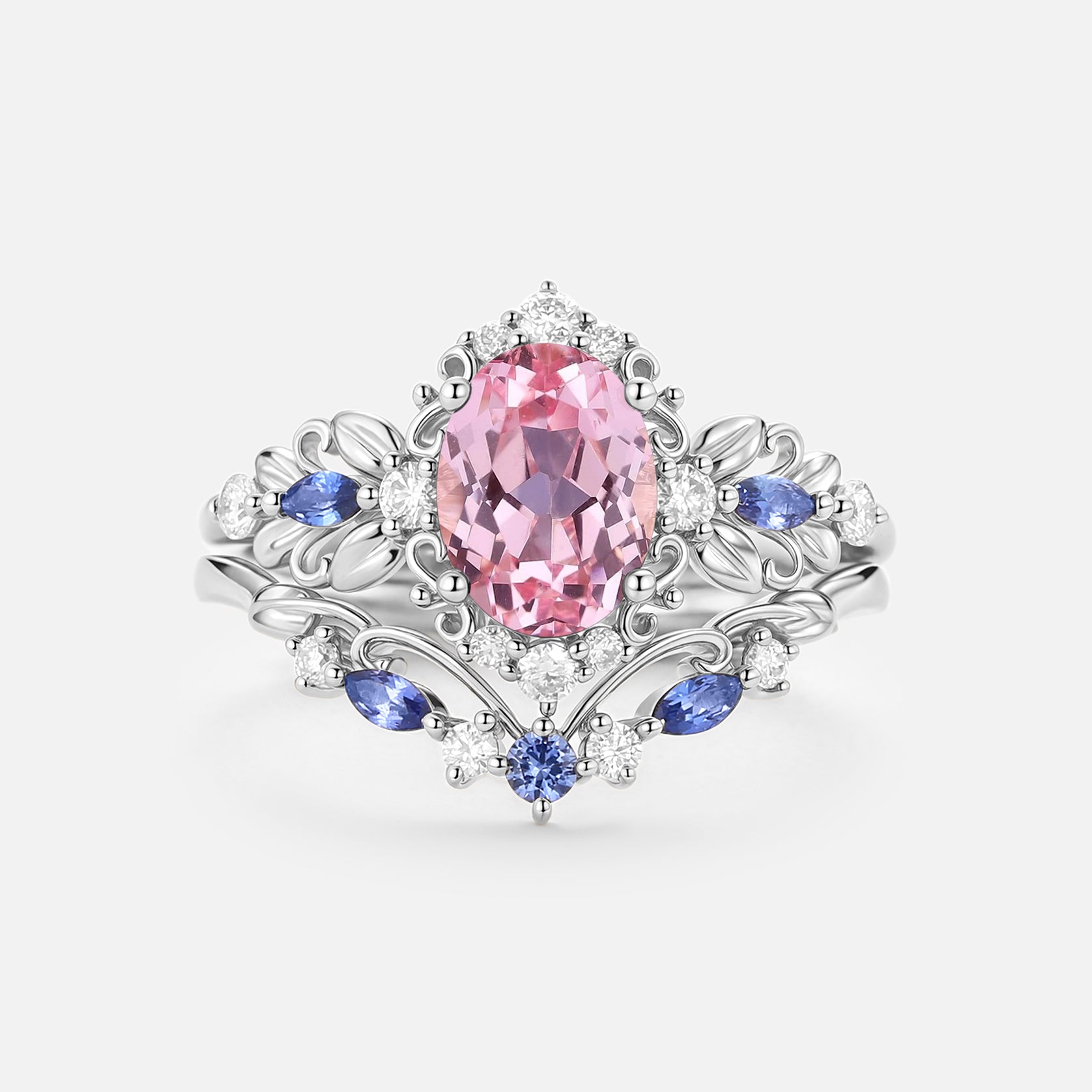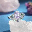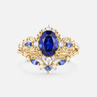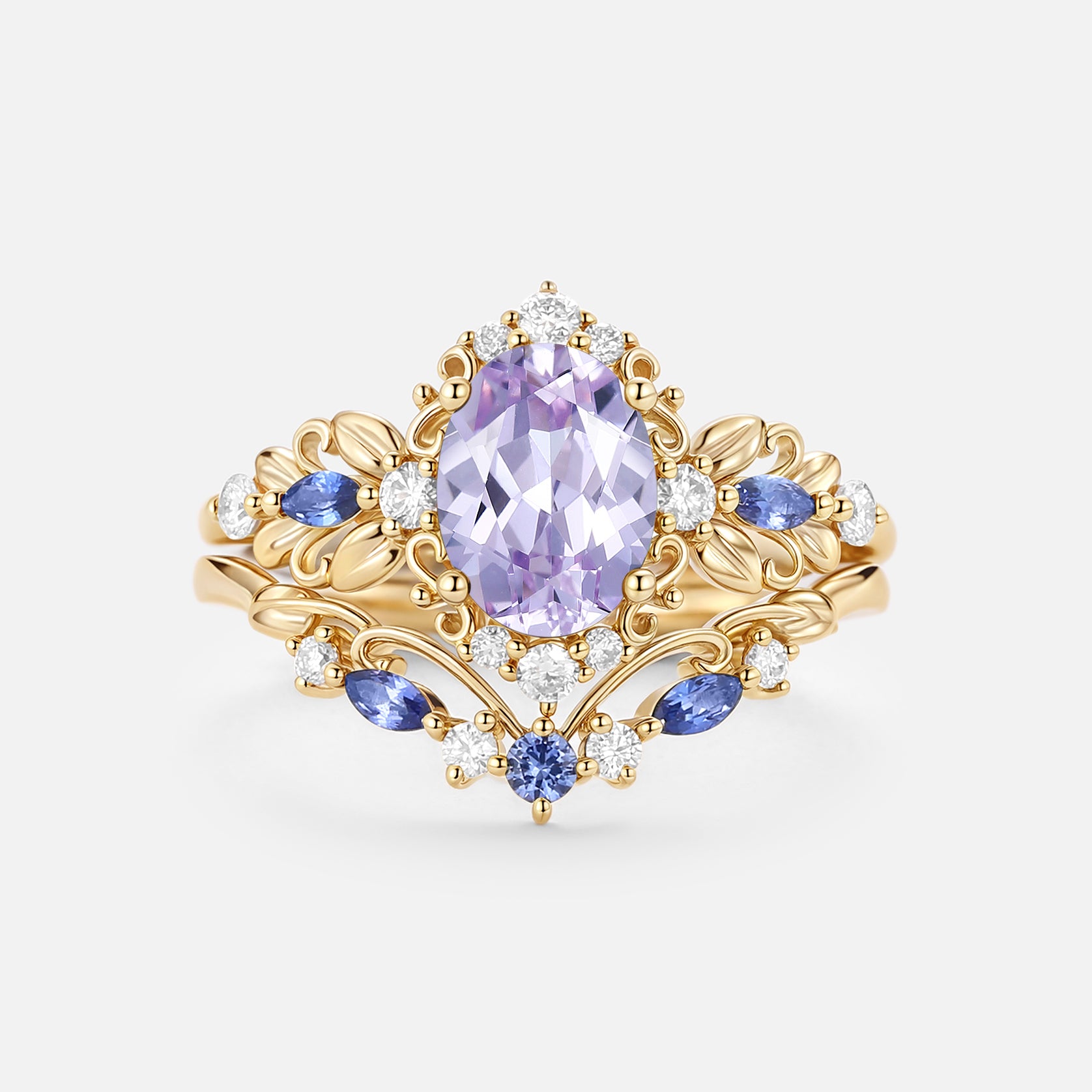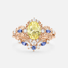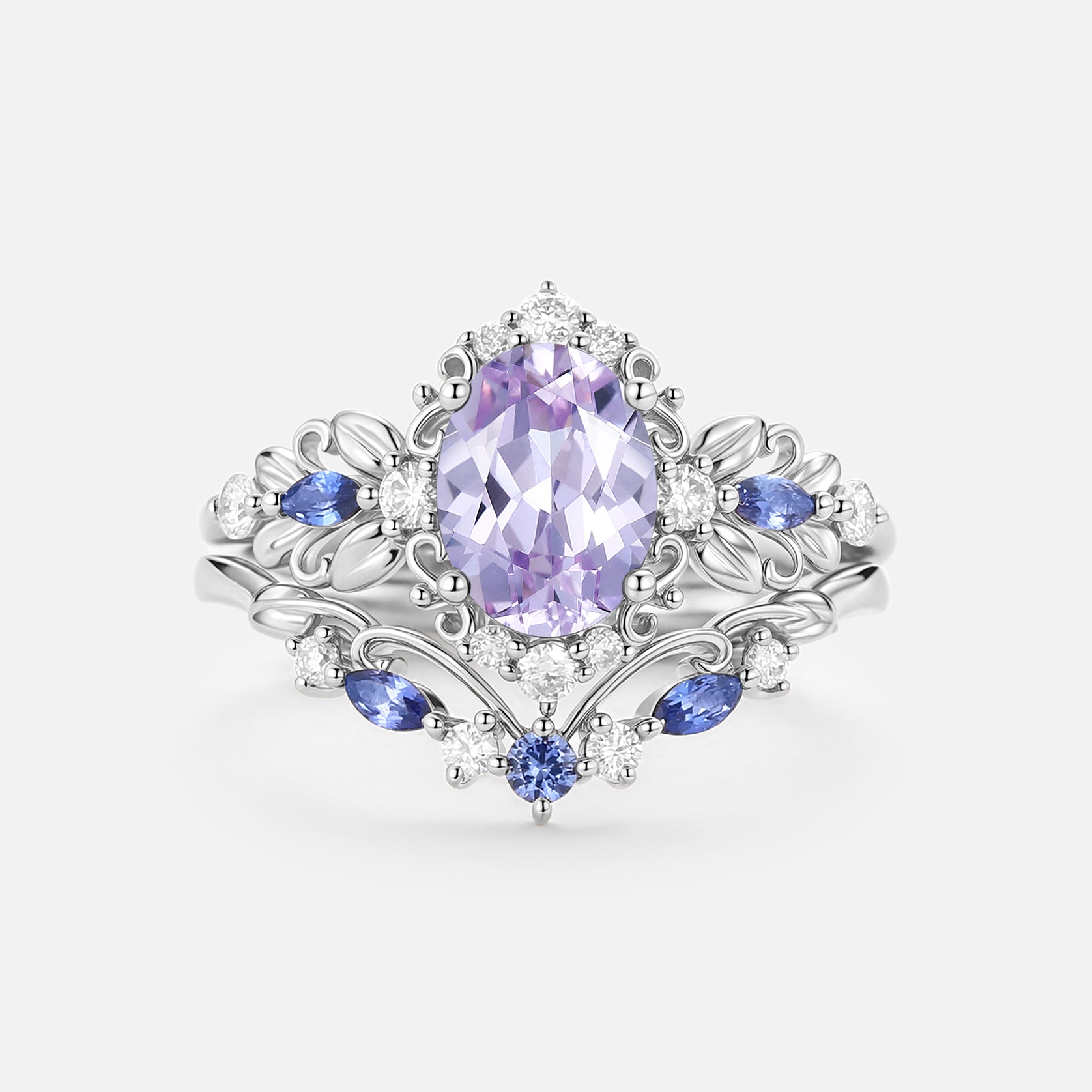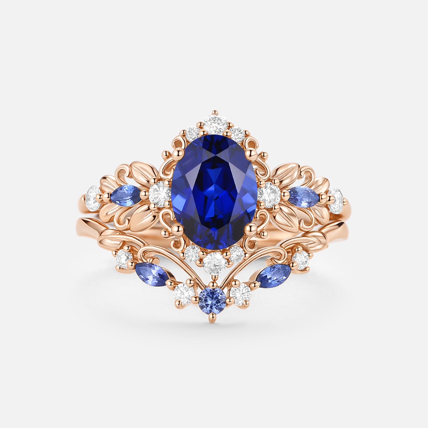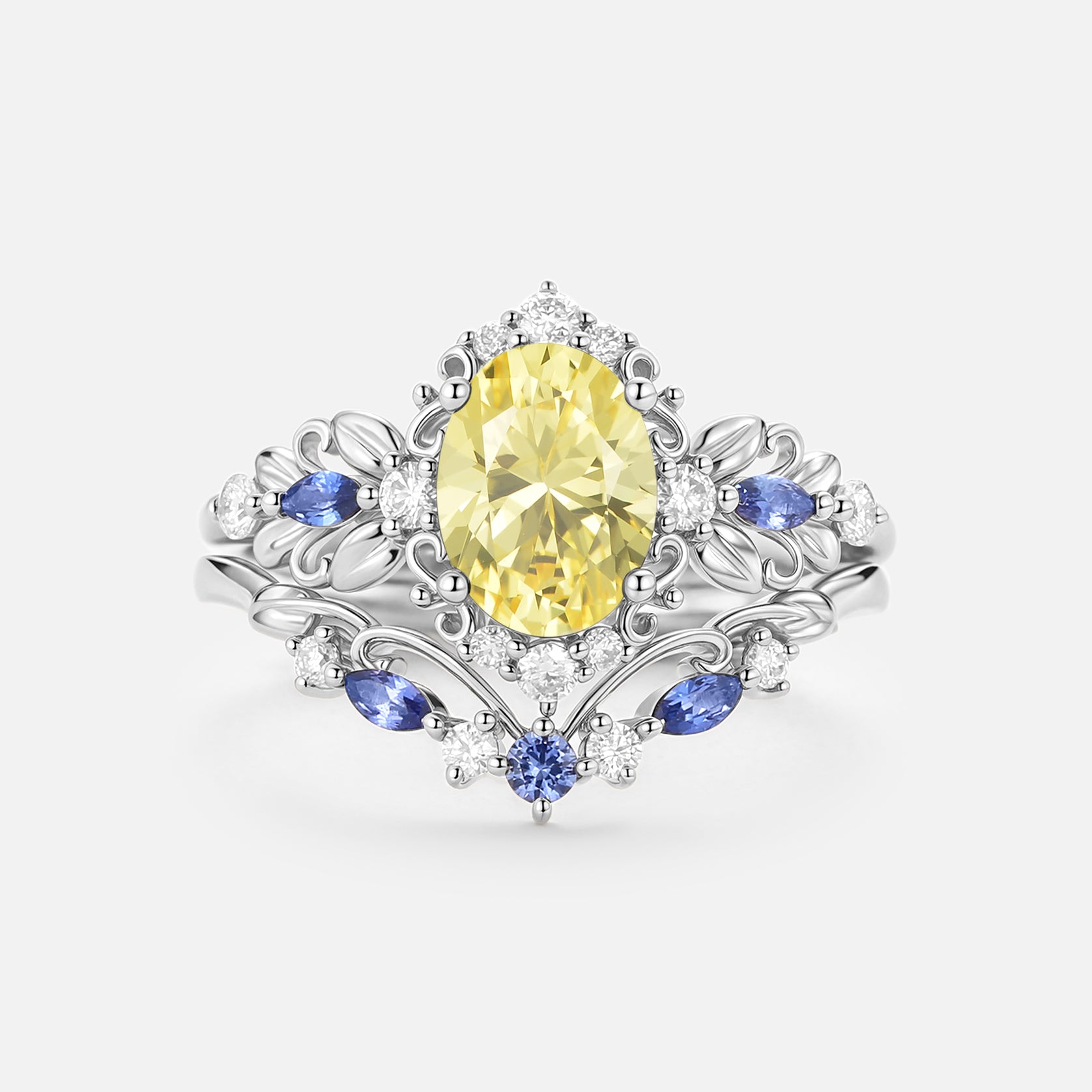 Oval Cut Leafy Lab Green Sapphire Engagement Ring Set 2pcs - Viriditas