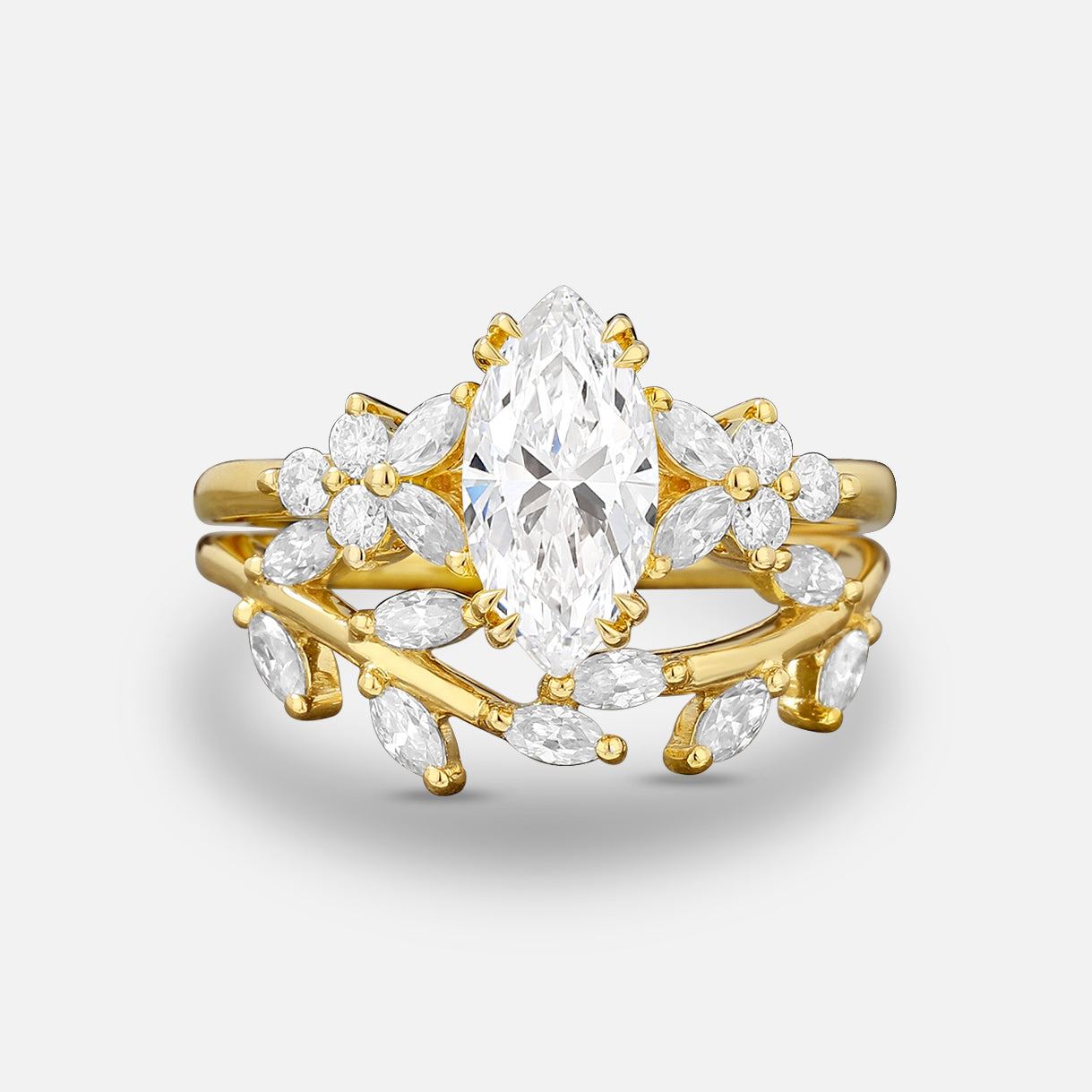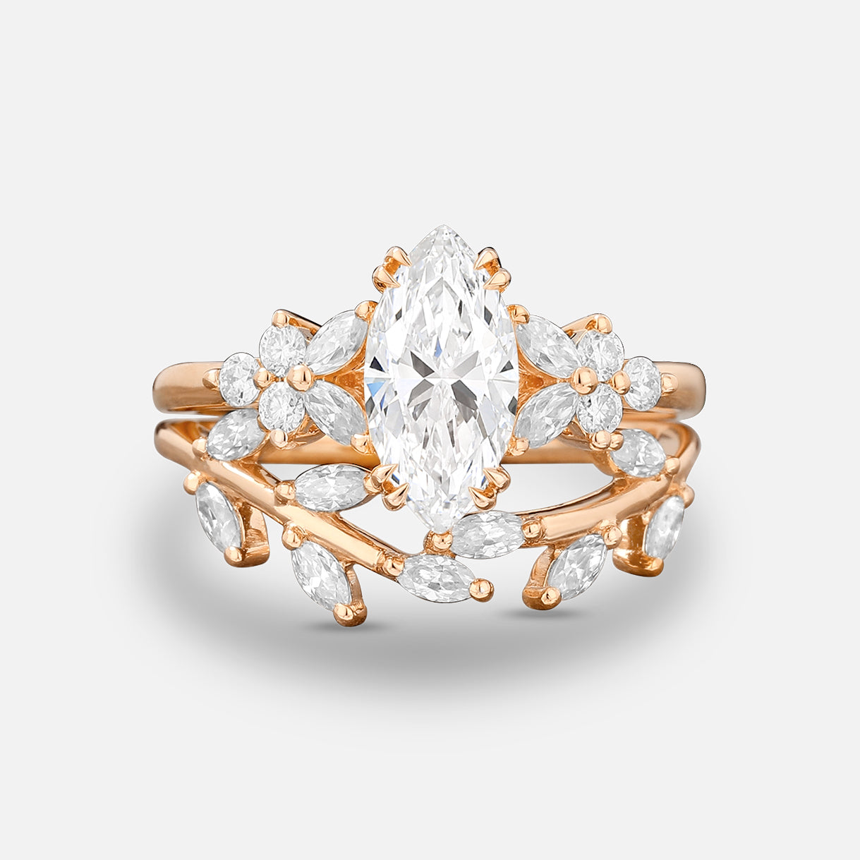 Classic Cluster Lab Grown Diamond Engagement Ring Sets 2pcs - Eileen