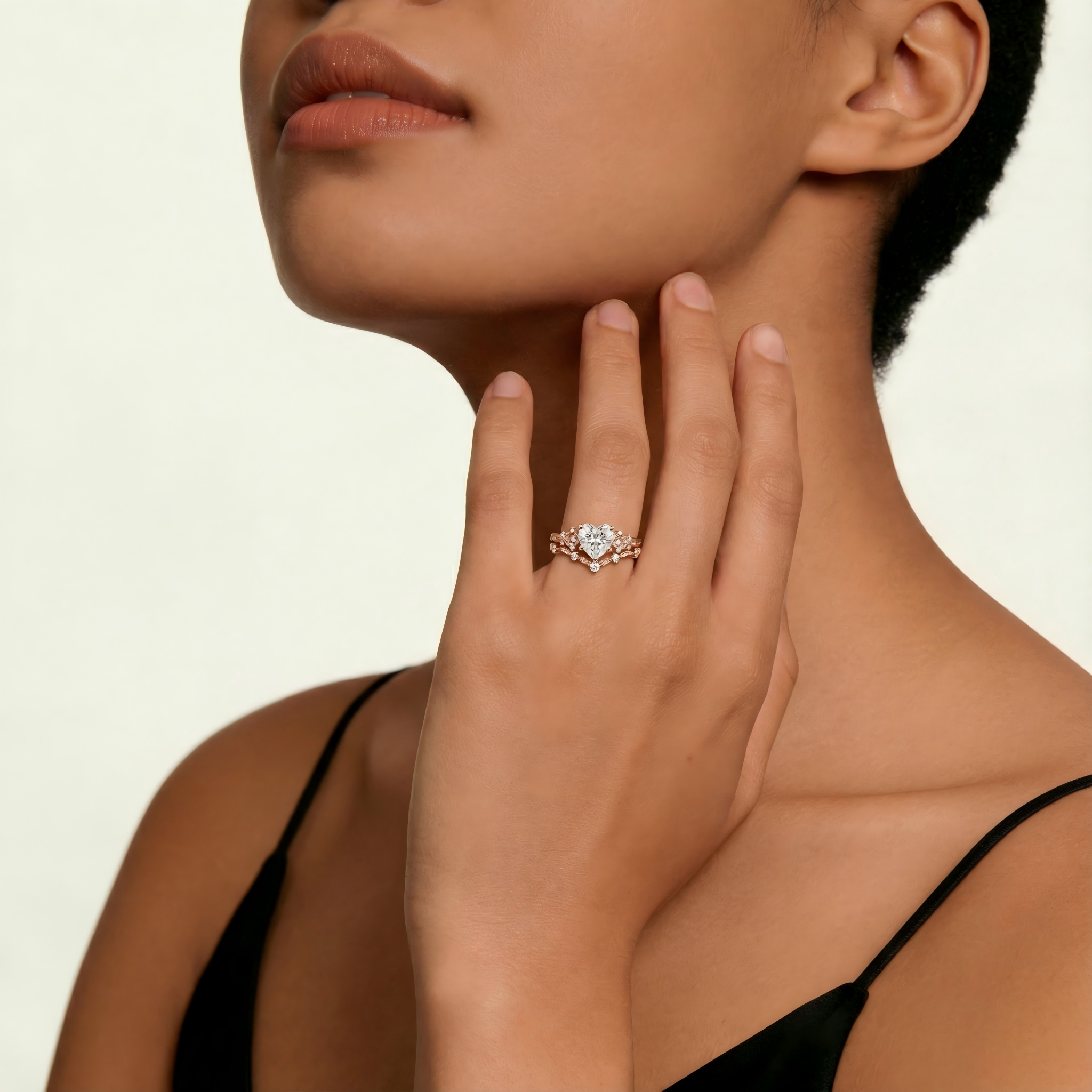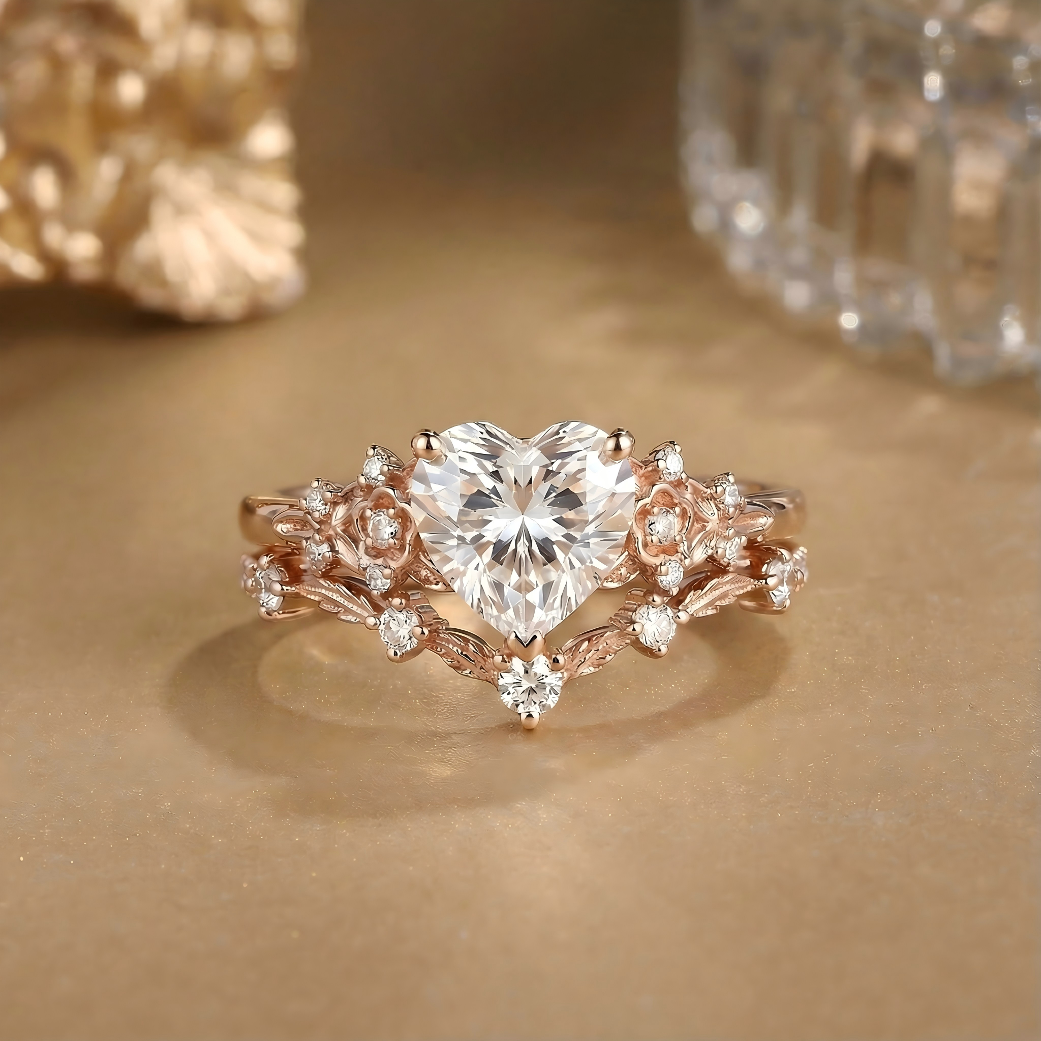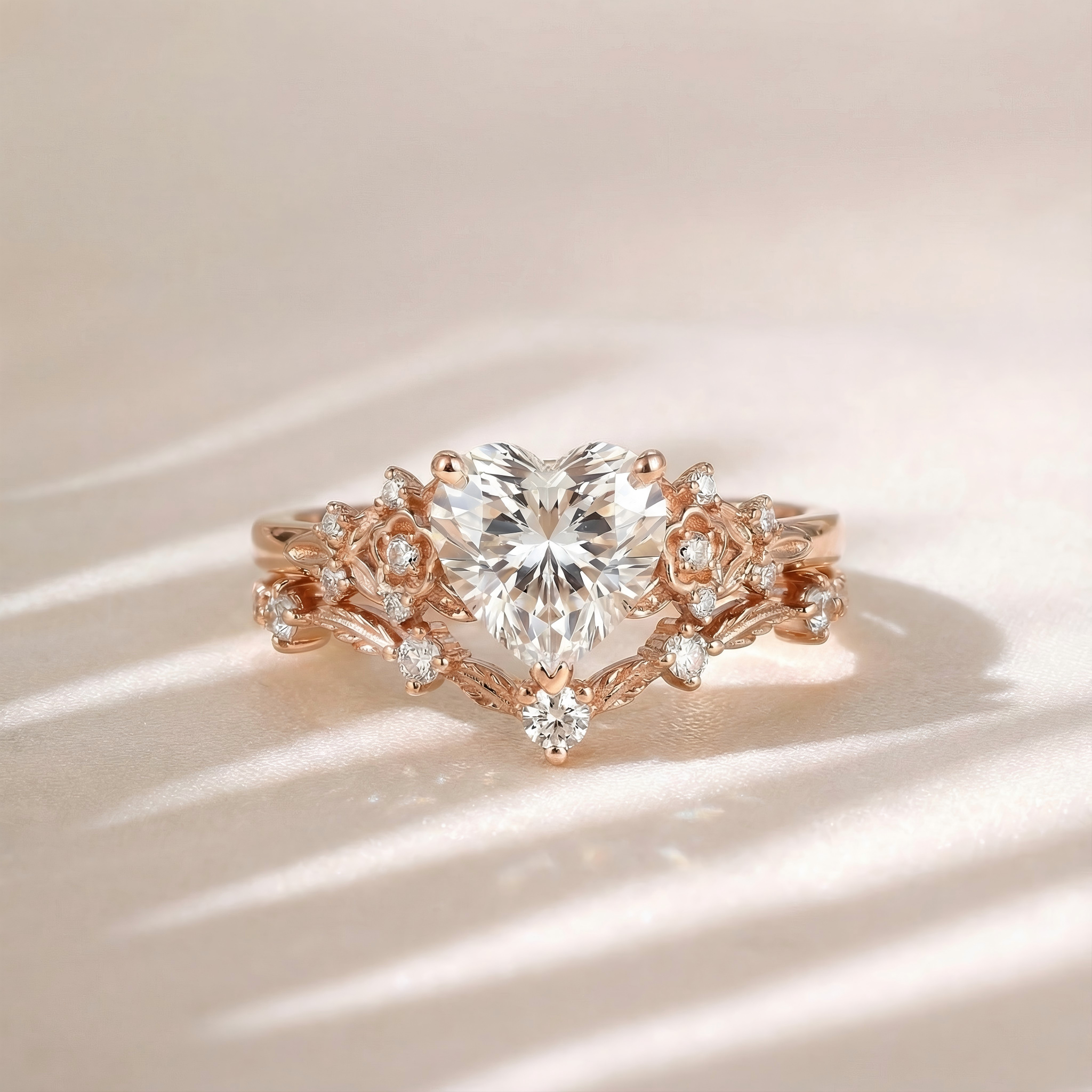 Heart Lab Grown Diamond Leafy Engagement Ring Set - Corlux