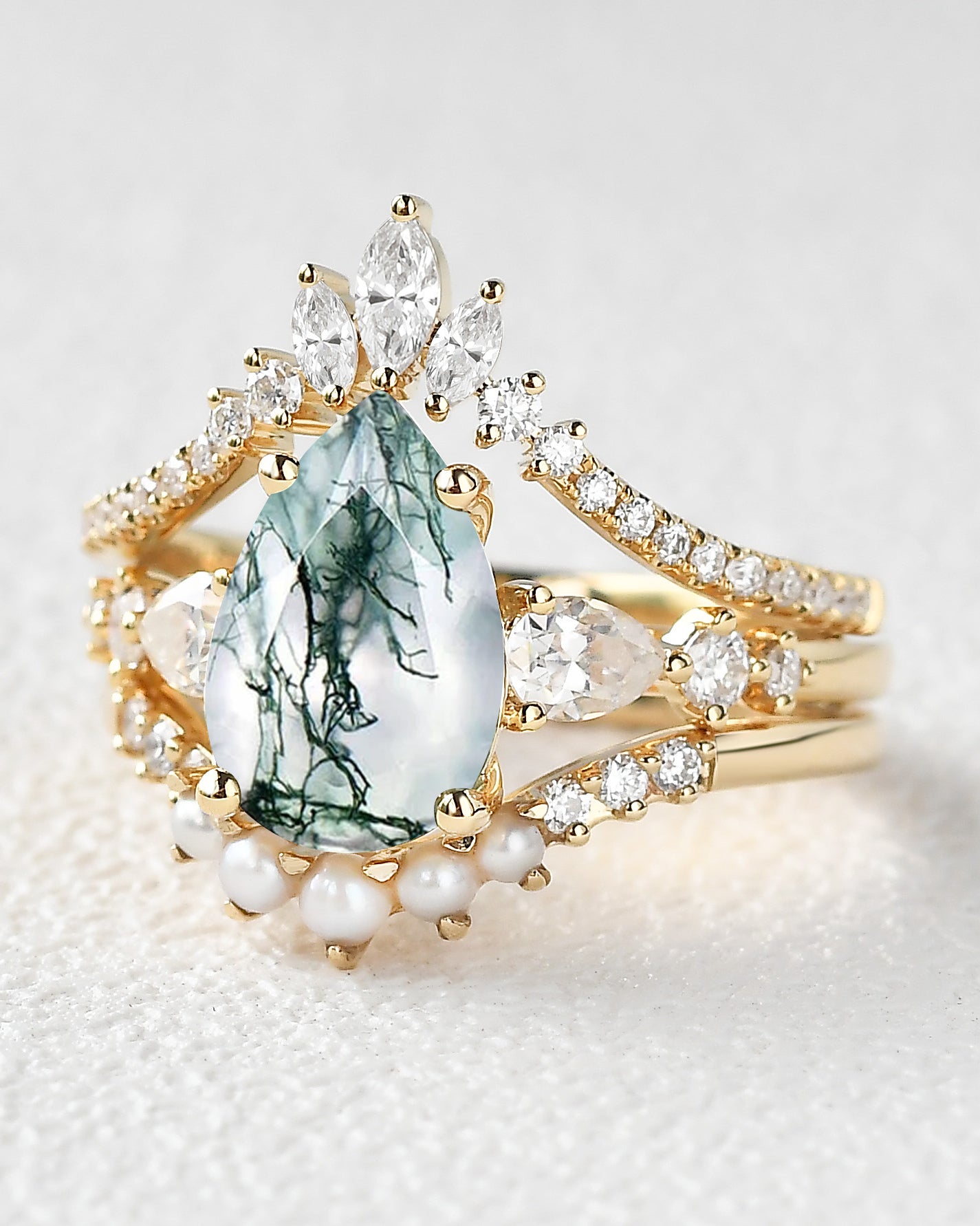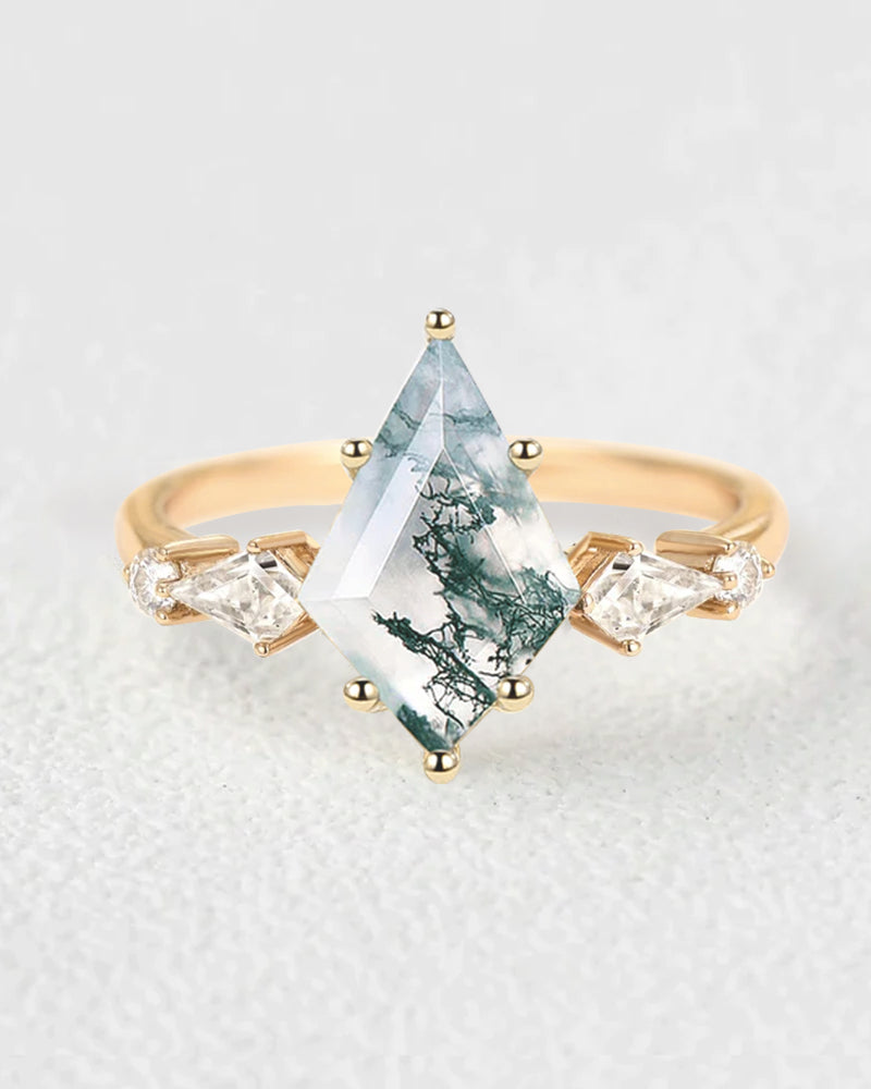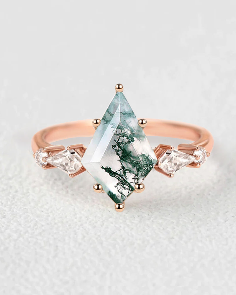 Big Carat Rings collection features gemstones with high quality and value, typically with larger carats, showcasing a more dazzling radiance and unique charm. These rings can be moss agate rings, moissanite rings, salt and pepper diamond rings, lab grown diamond rings, and various precious gemstones, each with its own unique color and luster.