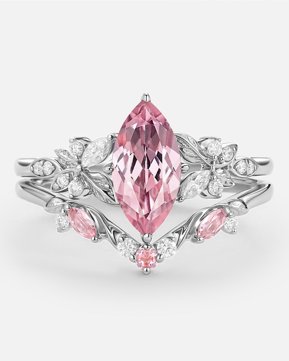 Felicegals 4ct Pear Shaped Moissanite Bridal Set White Gold Engagement Ring Art Deco Stacking Wedding Band Women Minimalist Ring Set 2pcs