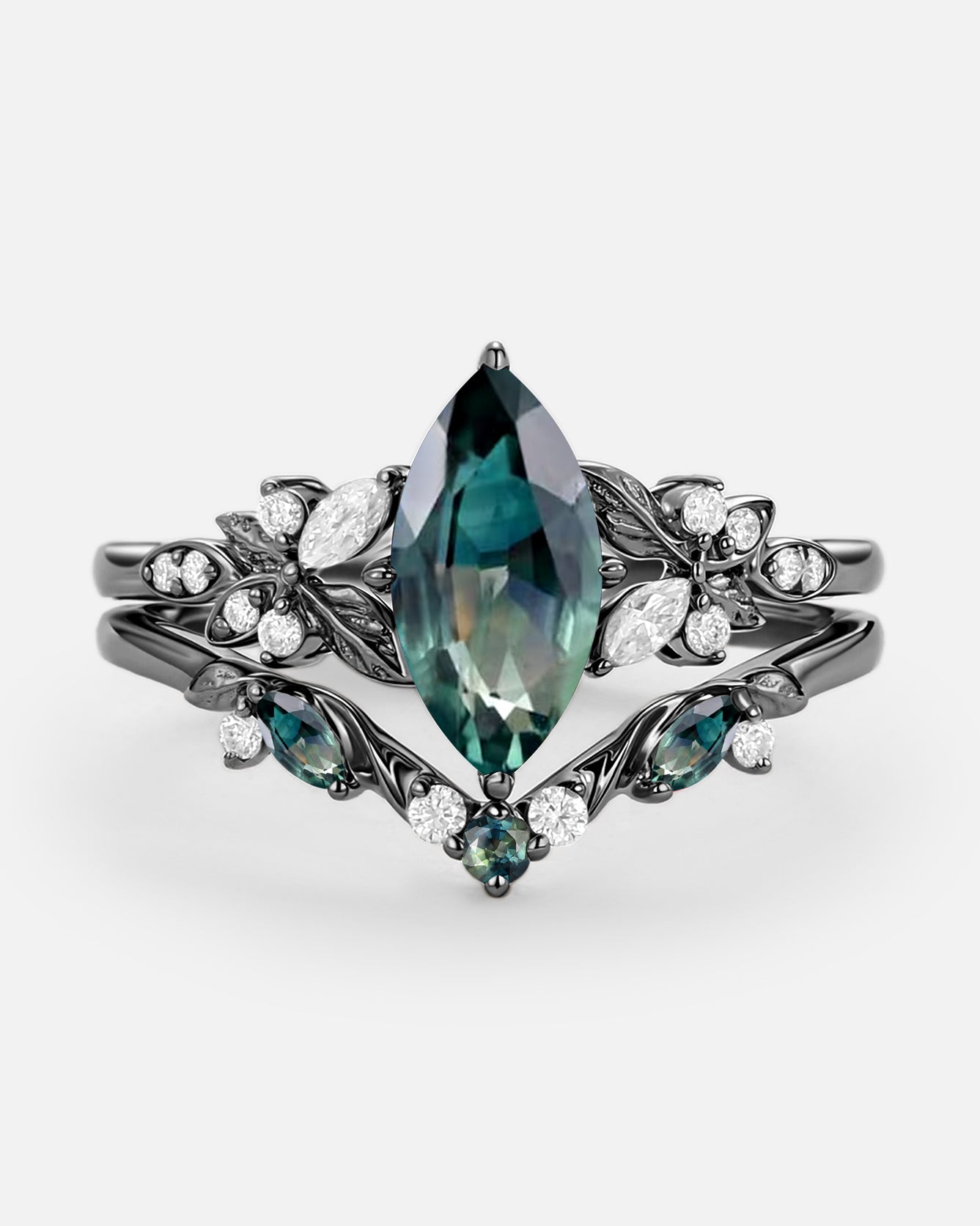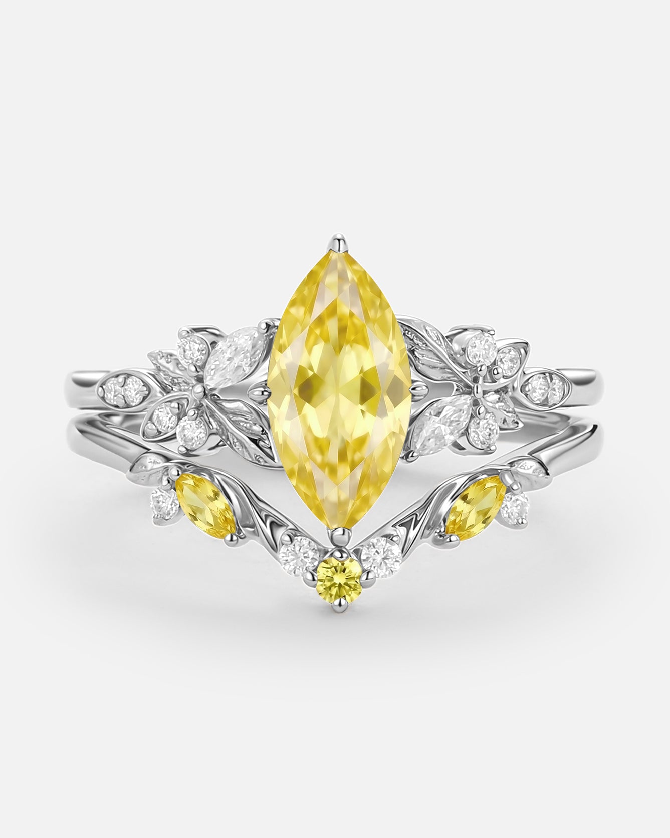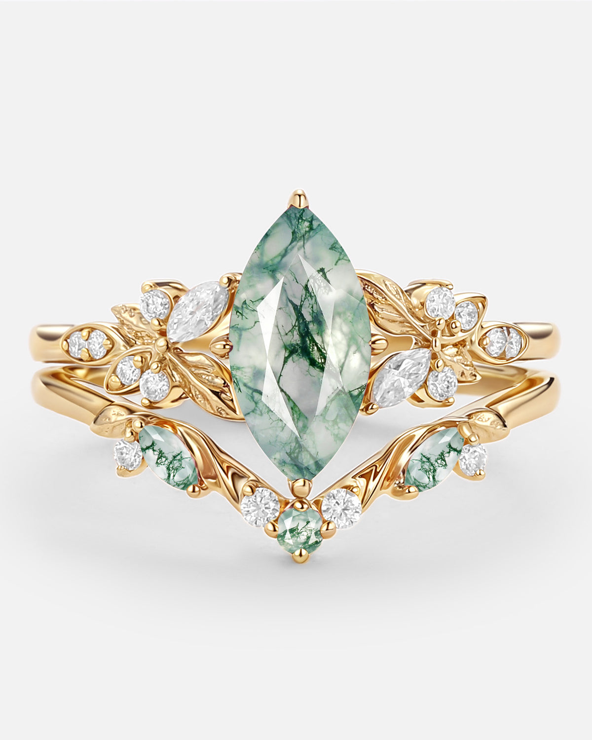 Art Deco Moissanite Ring Set 2pcs - Eliana