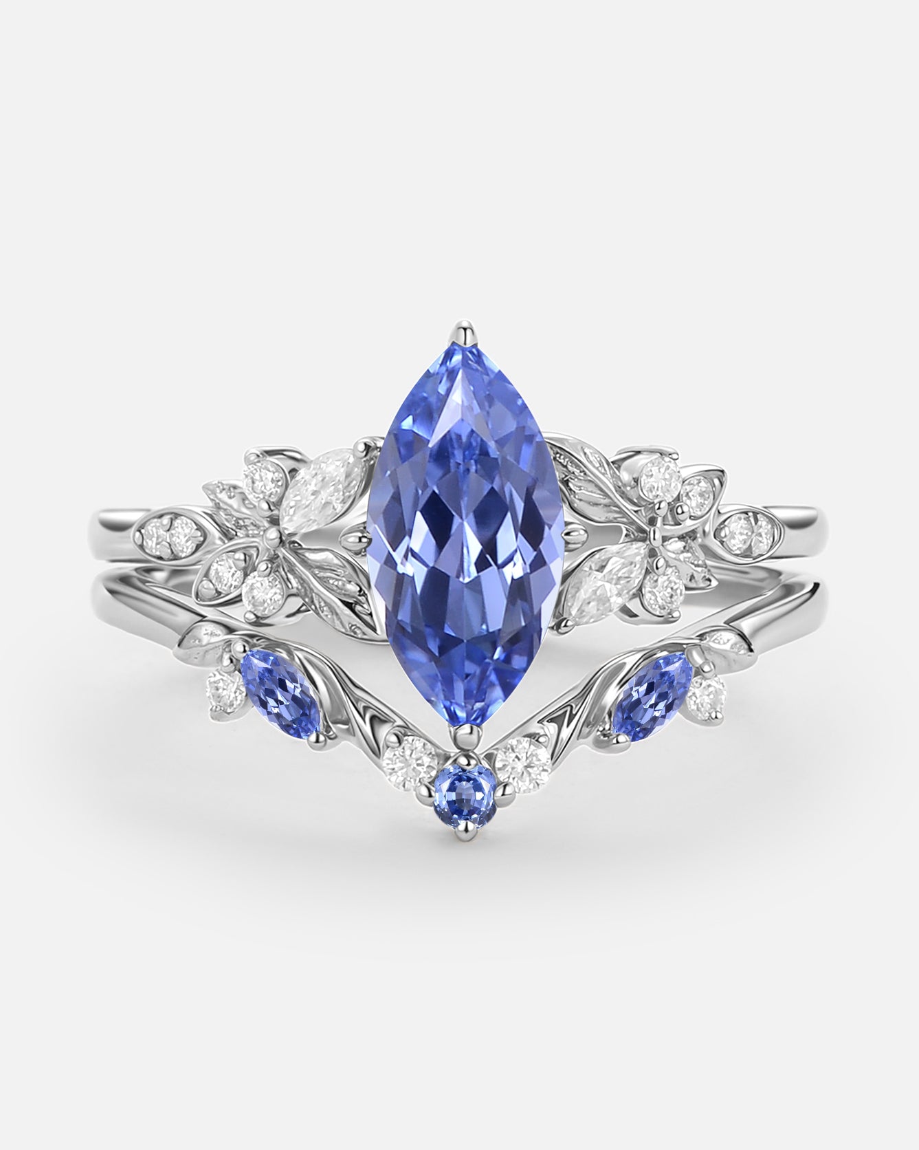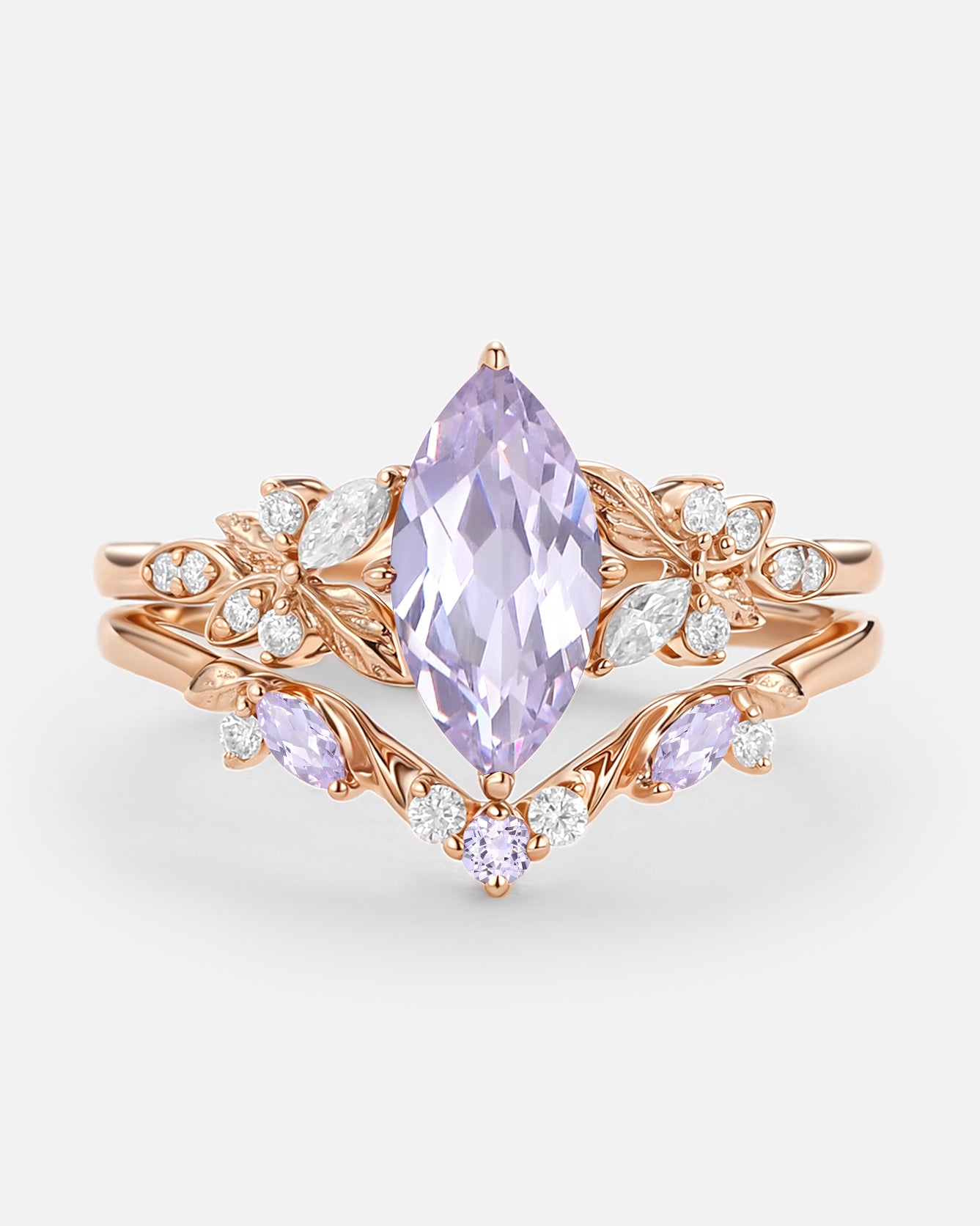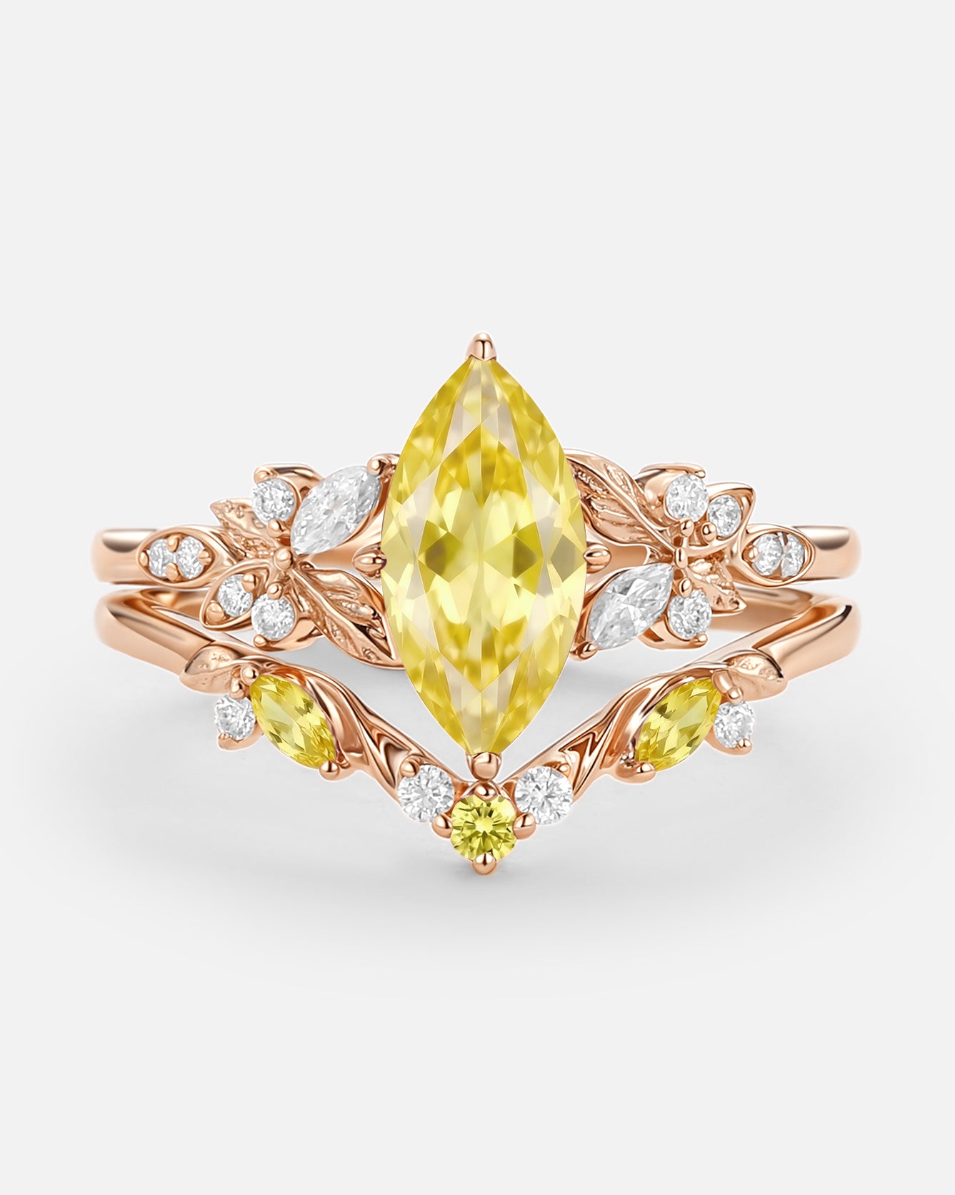 Art Deco Moissanite Ring Set 2pcs - Eliana