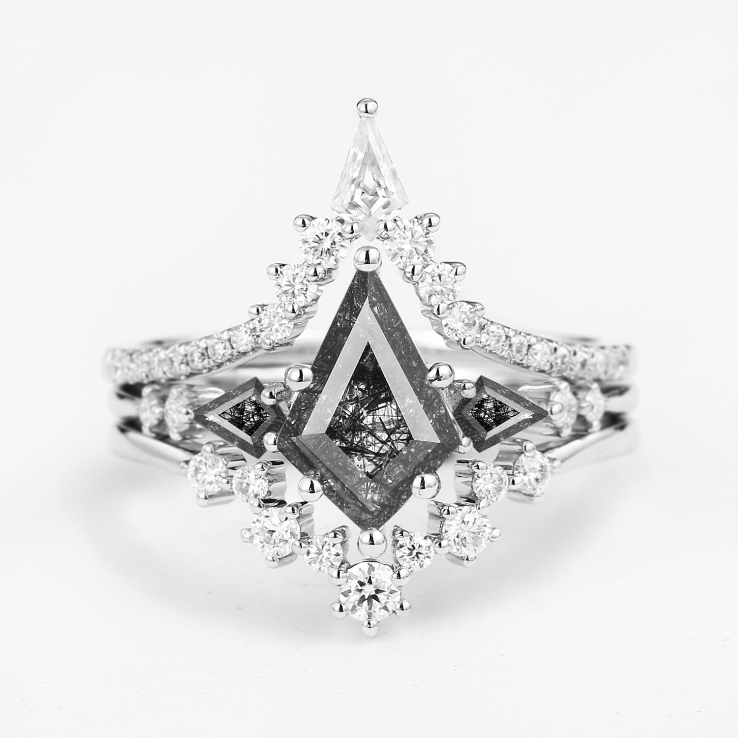 Twin Flames - Kite Cut Black Rutilated Quartz Engagement Ring Set 3pcs - Tyler