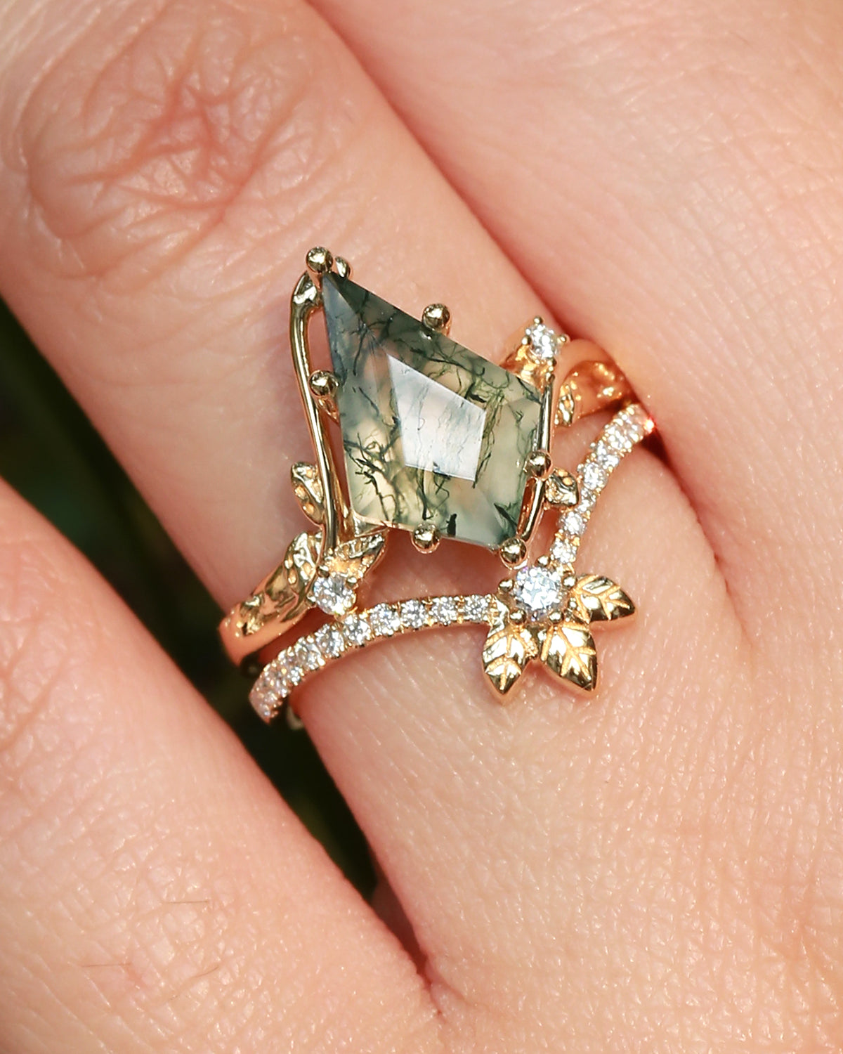 Big Carat Rings collection features gemstones with high quality and value, typically with larger carats, showcasing a more dazzling radiance and unique charm. These rings can be moss agate rings, moissanite rings, salt and pepper diamond rings, lab grown diamond rings, and various precious gemstones, each with its own unique color and luster.