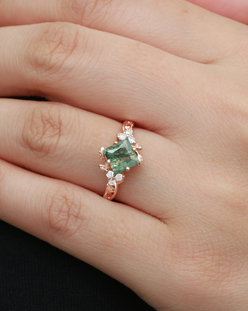 Our Black Gold Moss Agate Ring Series fuses edgy allure with nature’s warmth: each piece showcases a sleek black gold band—boasting a rich, mirror-like lustre—paired with a one-of-a-kind moss agate gem. Its swirly green veins (evoking tiny, frozen woodlands) soften the black gold’s modern sharpness, while either subtle metal trims or clean, minimalist designs draw all eyes to this stunning contrast. In this collection, black gold acts as the ideal backdrop to highlight the agate, making it glow brilliantly—letting you embrace nature’s unique charm with a bold, timeless style that adds a dash of glamour to every moment.