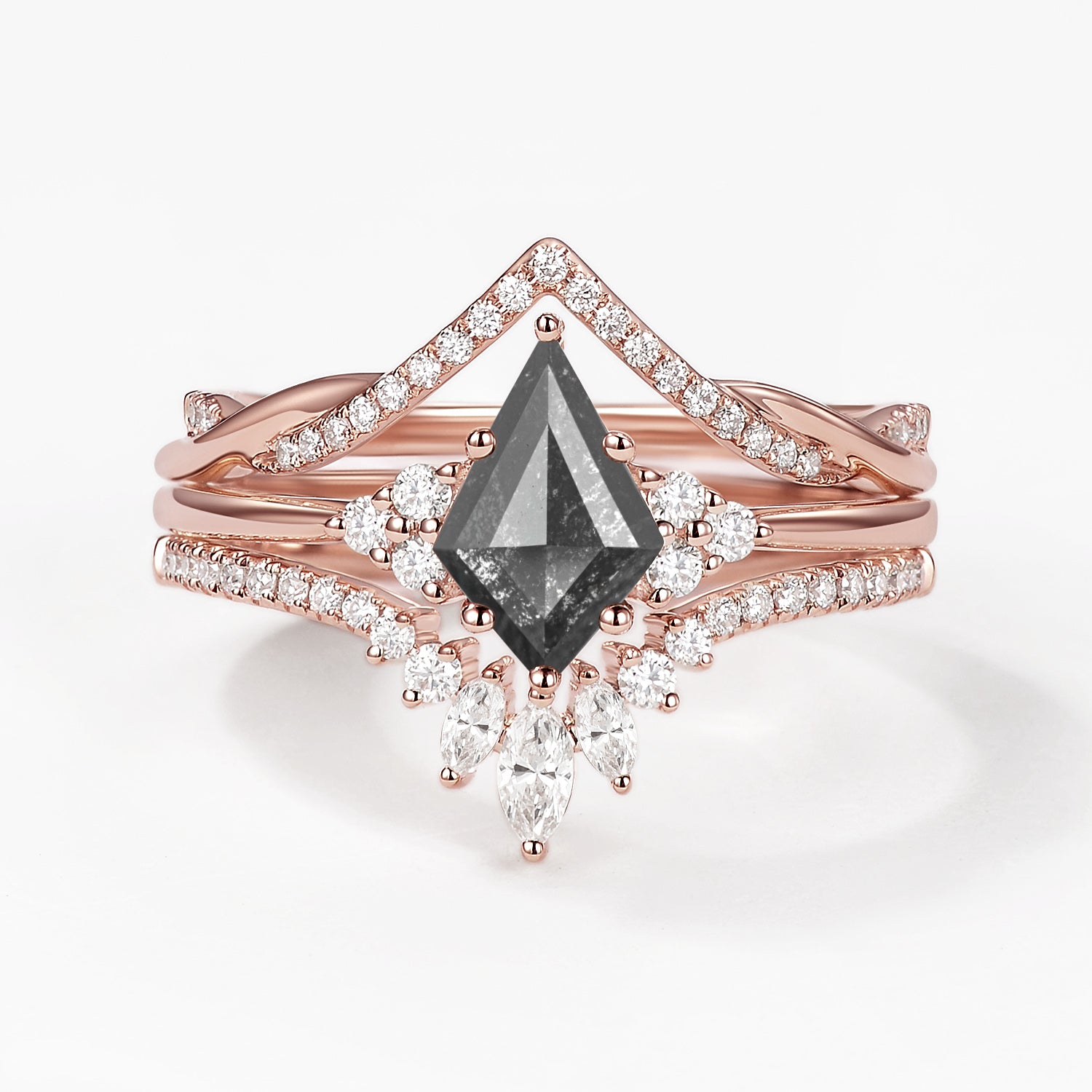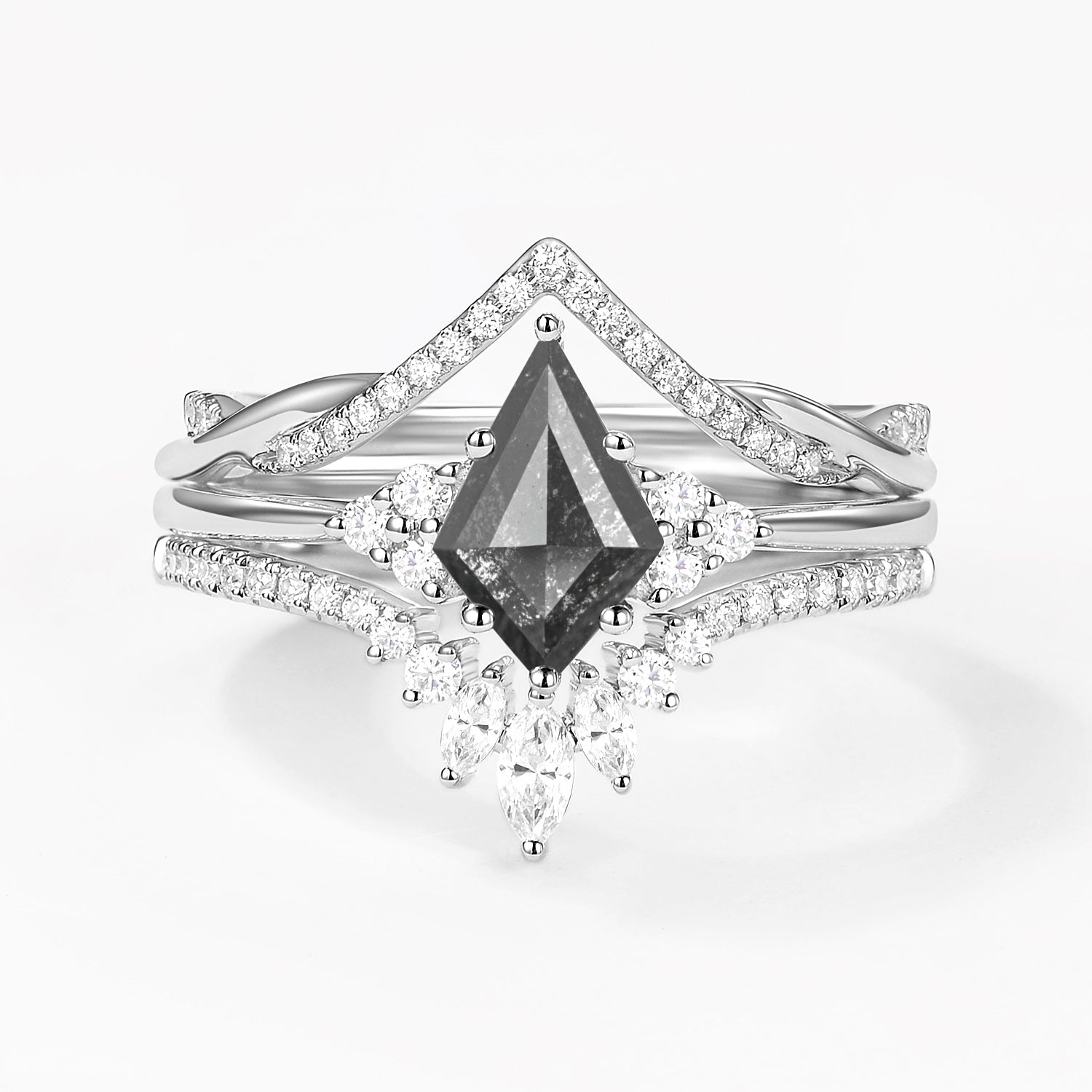 Kite Cut Salt and Pepper Diamonds Infinity Ring Set 3pcs