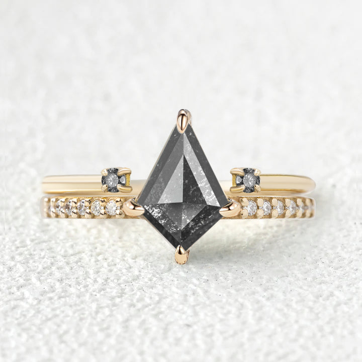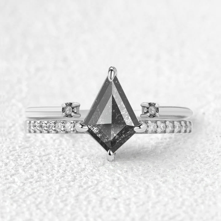 Nature Salt and Pepper Diamonds Wedding Ring Set 2pcs