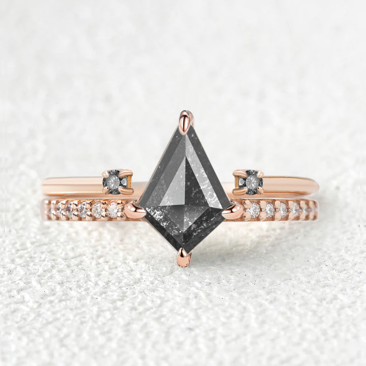 1.5ct Salt and Pepper Moissanite Ring Set 2pcs Rose Gold Engagement Ring White Gold Marquise Cluster Diamond Ring Unique Dust Moissanite Space