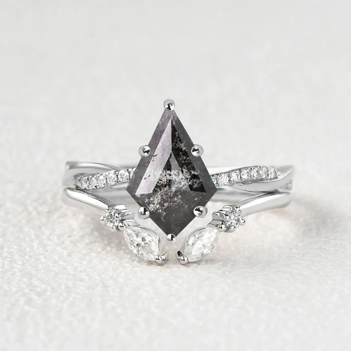 Kite Salt and Pepper Diamond Ring Salt and Pepper Kite Diamond Engagement Ring Kite Cut Diamond Ring, Kite Shape Ring Solitaire Ring