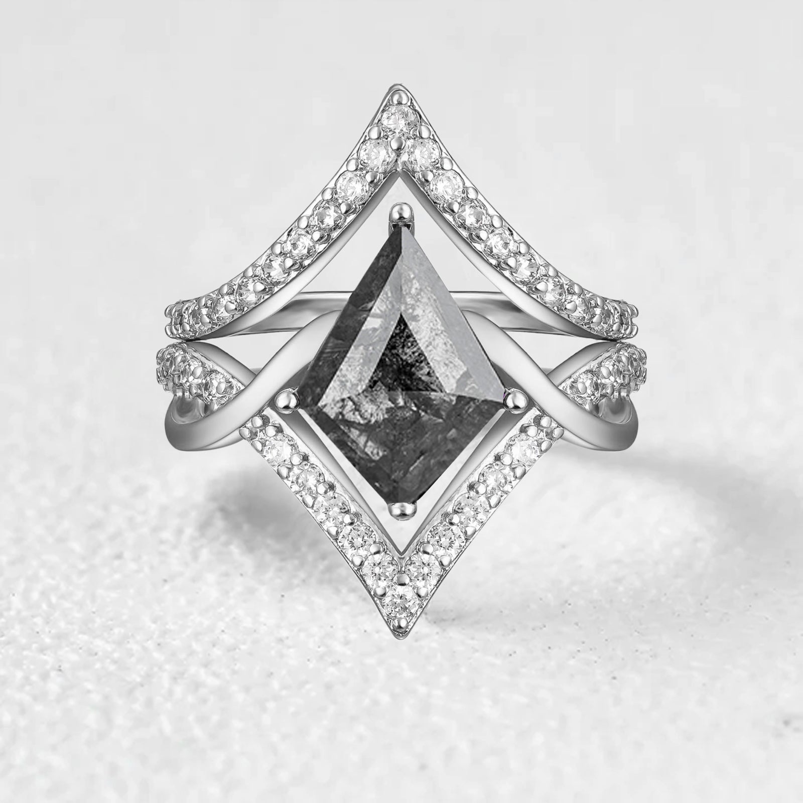 Salt and Pepper Diamonds Vintage Infinity Engagement Ring Set 2pcs