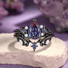 Pear Shaped Vintage Lab Alexandrite Leafy Ring Set 2pcs - Pyrrhus