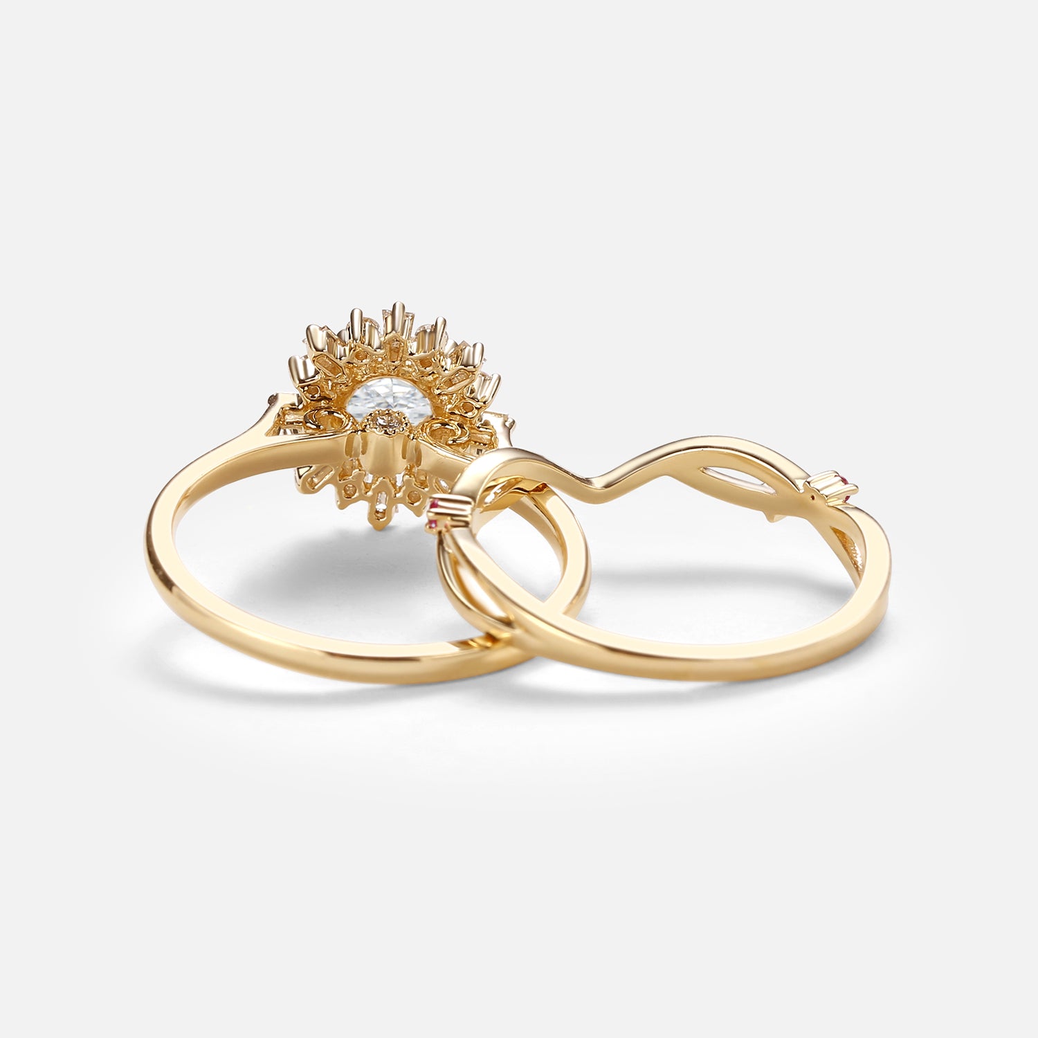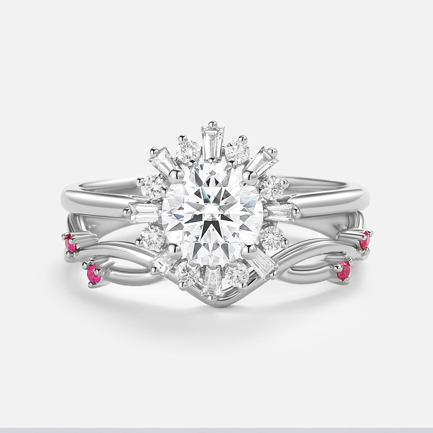 Moissanite is becoming increasingly popular as an alternative to traditional diamond engagement rings. Felicegals Moissanite Bridal Sets are crafted with ethically sourced moissanite stones, which are known for their brilliance and fire.