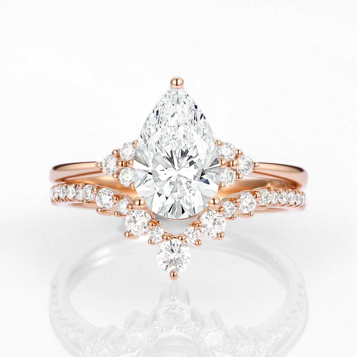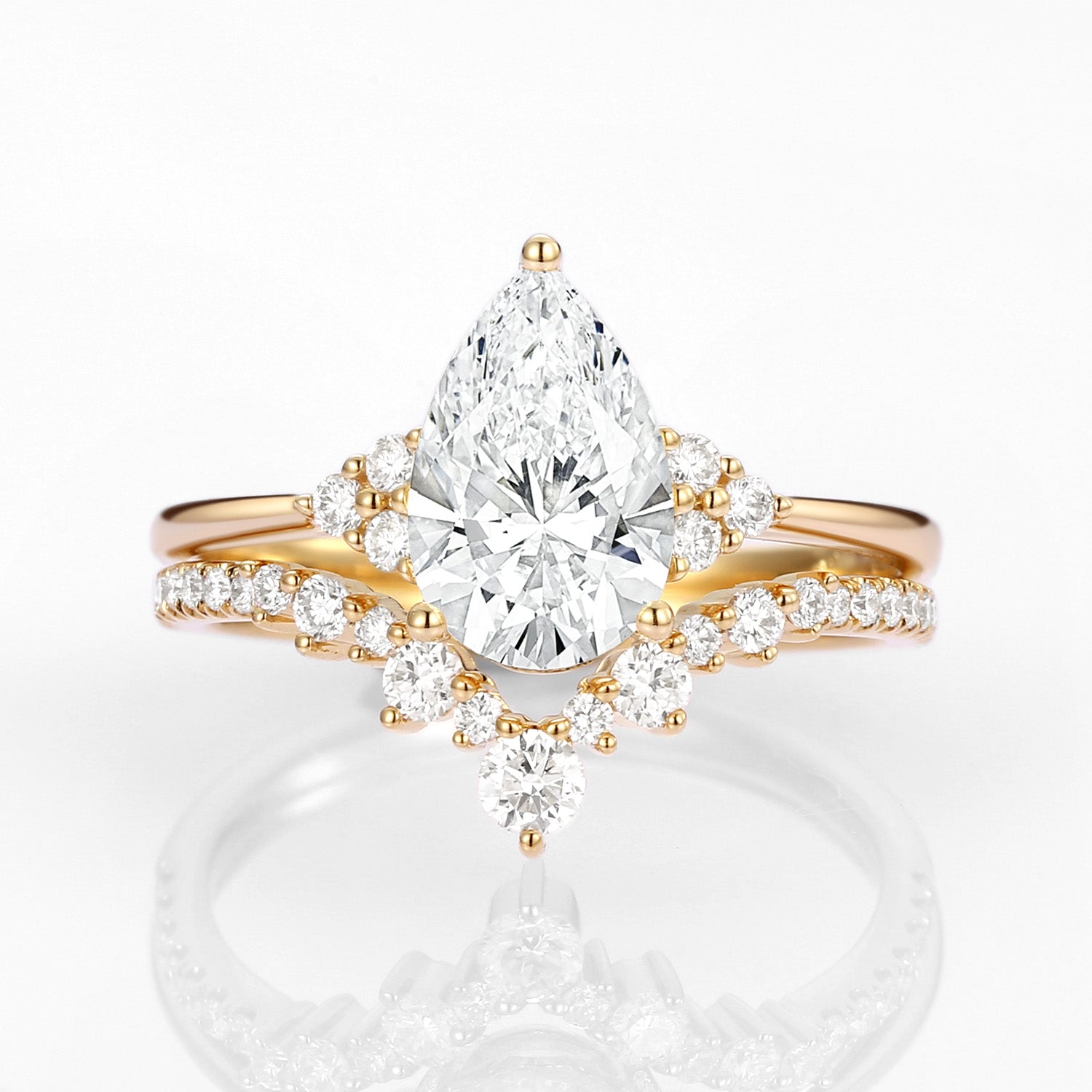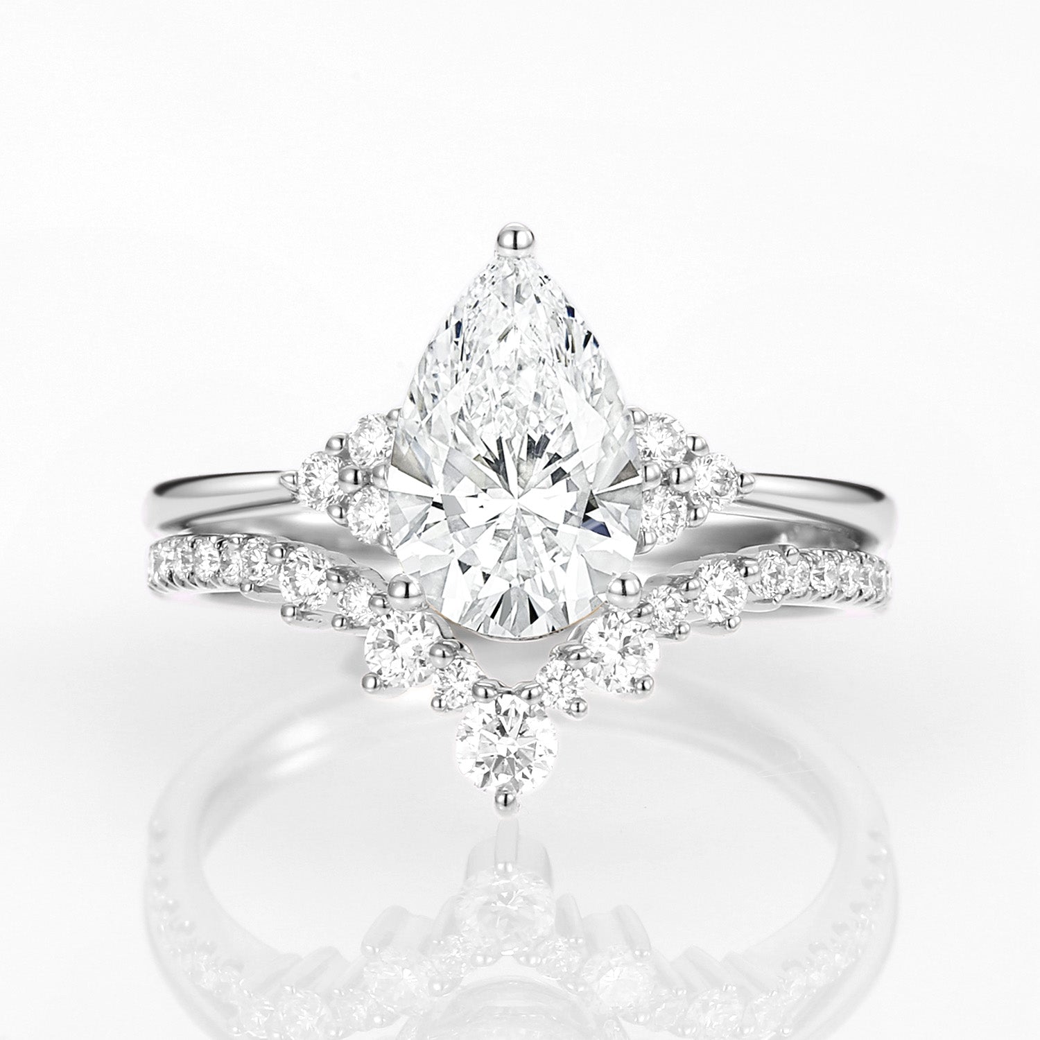 1.5ct Classic Pear Lab Grown Diamond Ring Set 2pcs
