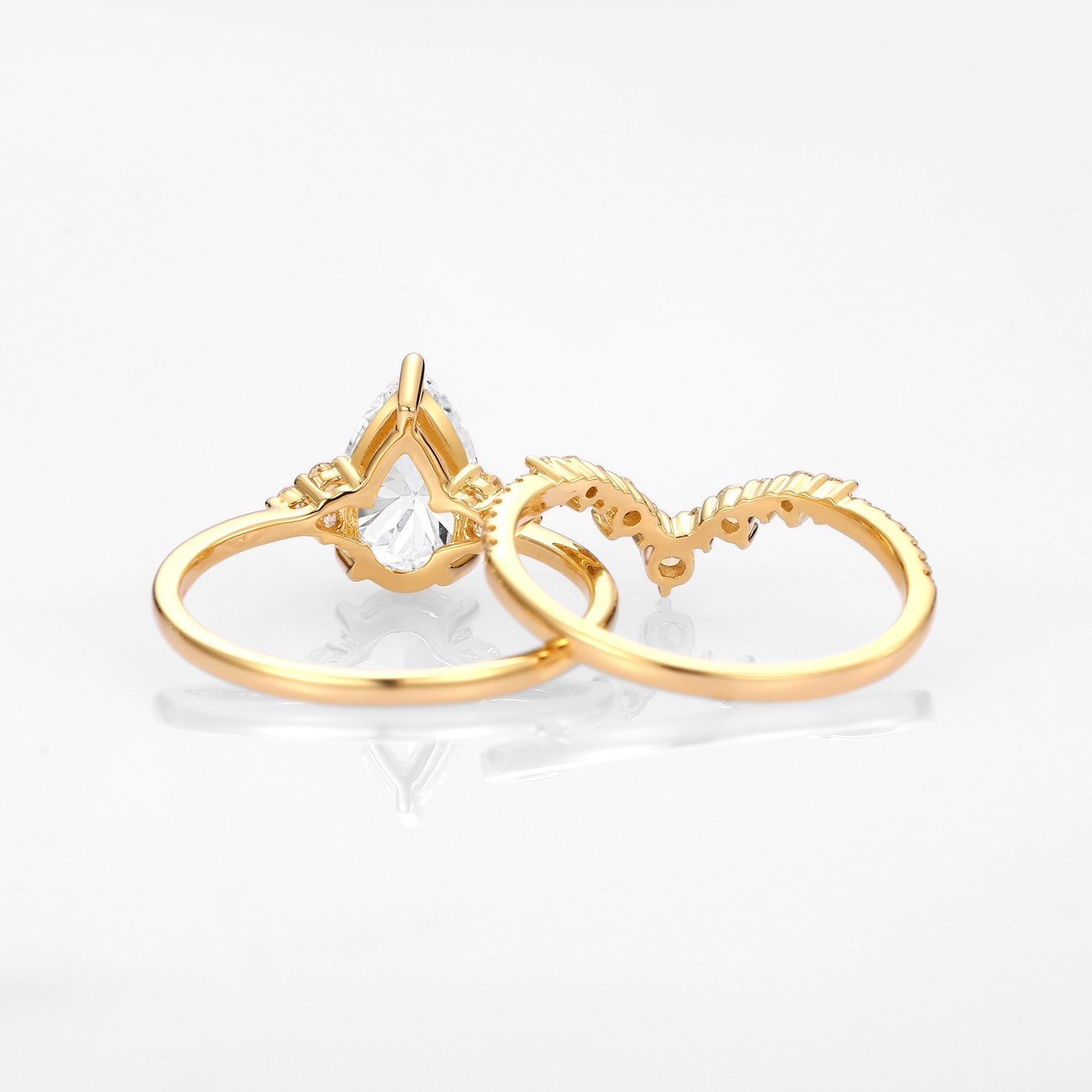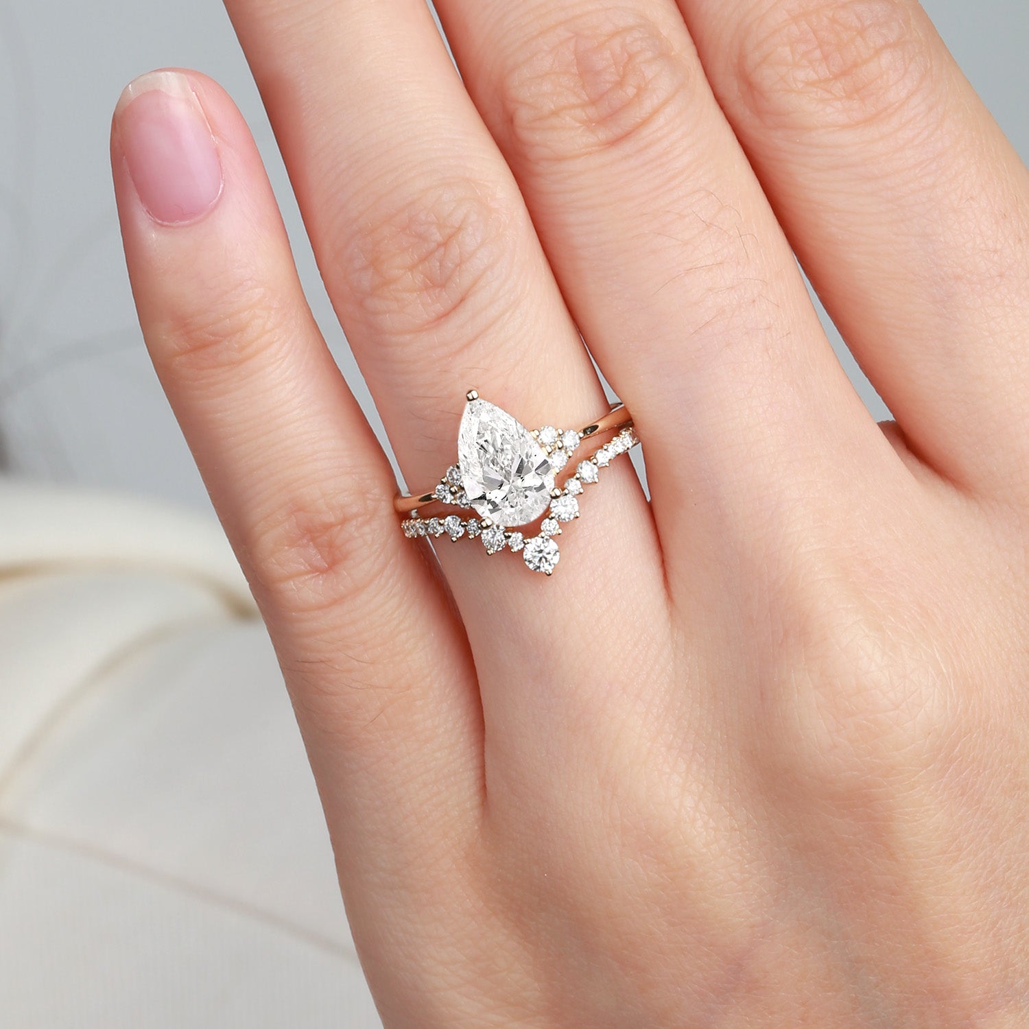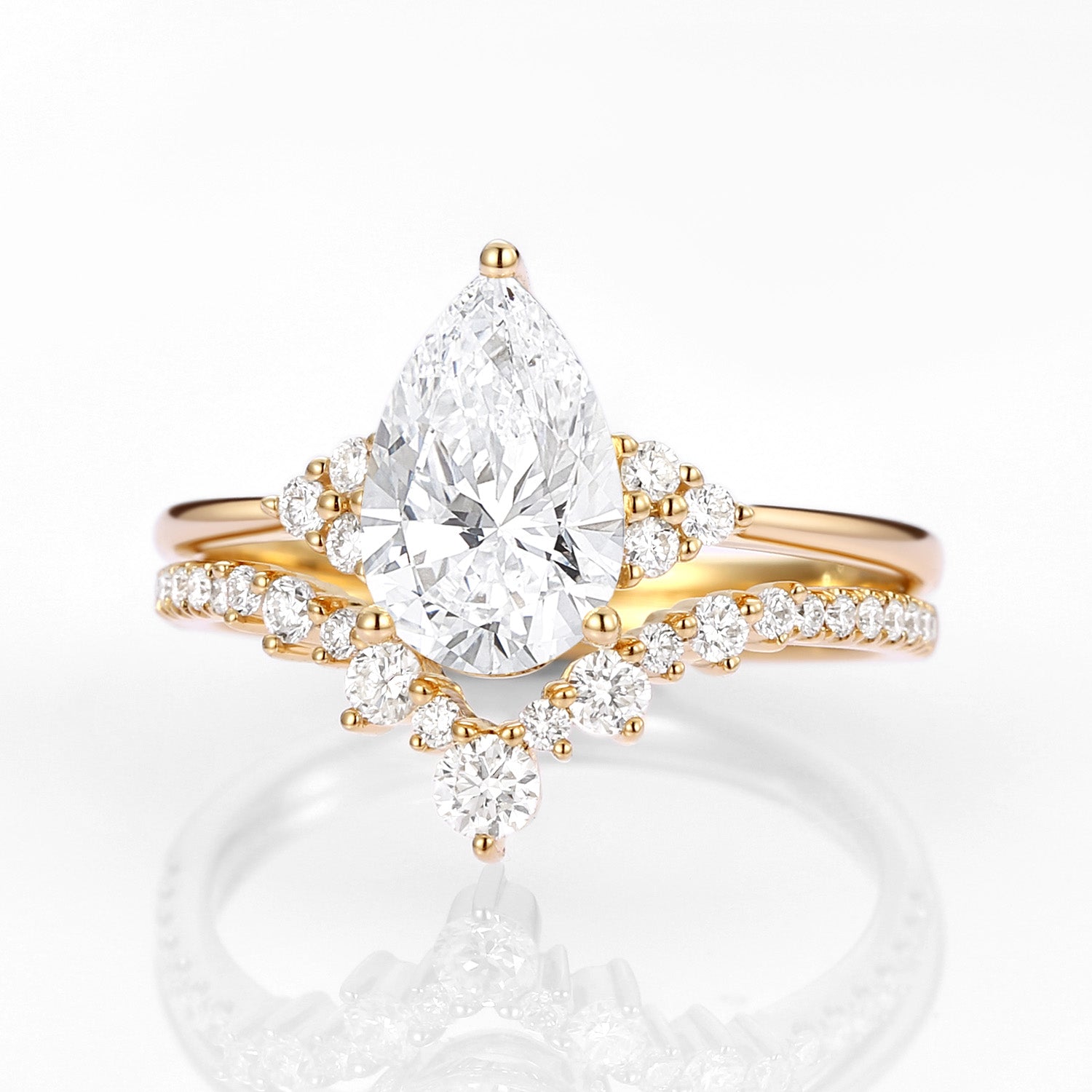 1.5ct Classic Pear Lab Grown Diamond Ring Set 2pcs