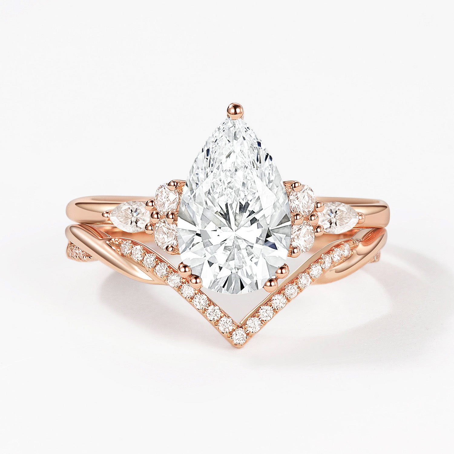 2.0ct Pear Lab Grown Diamond Infinity Ring Set 2pcs