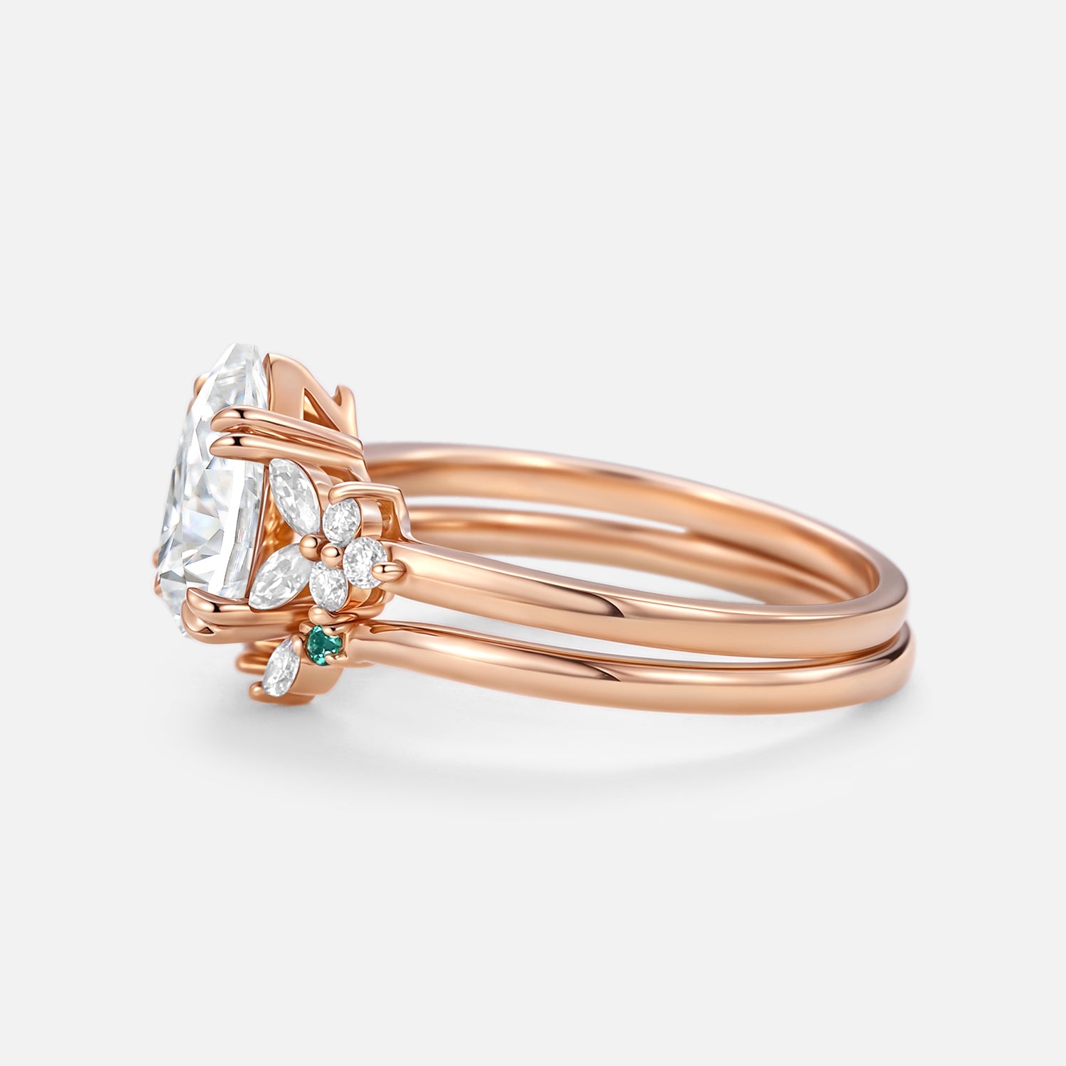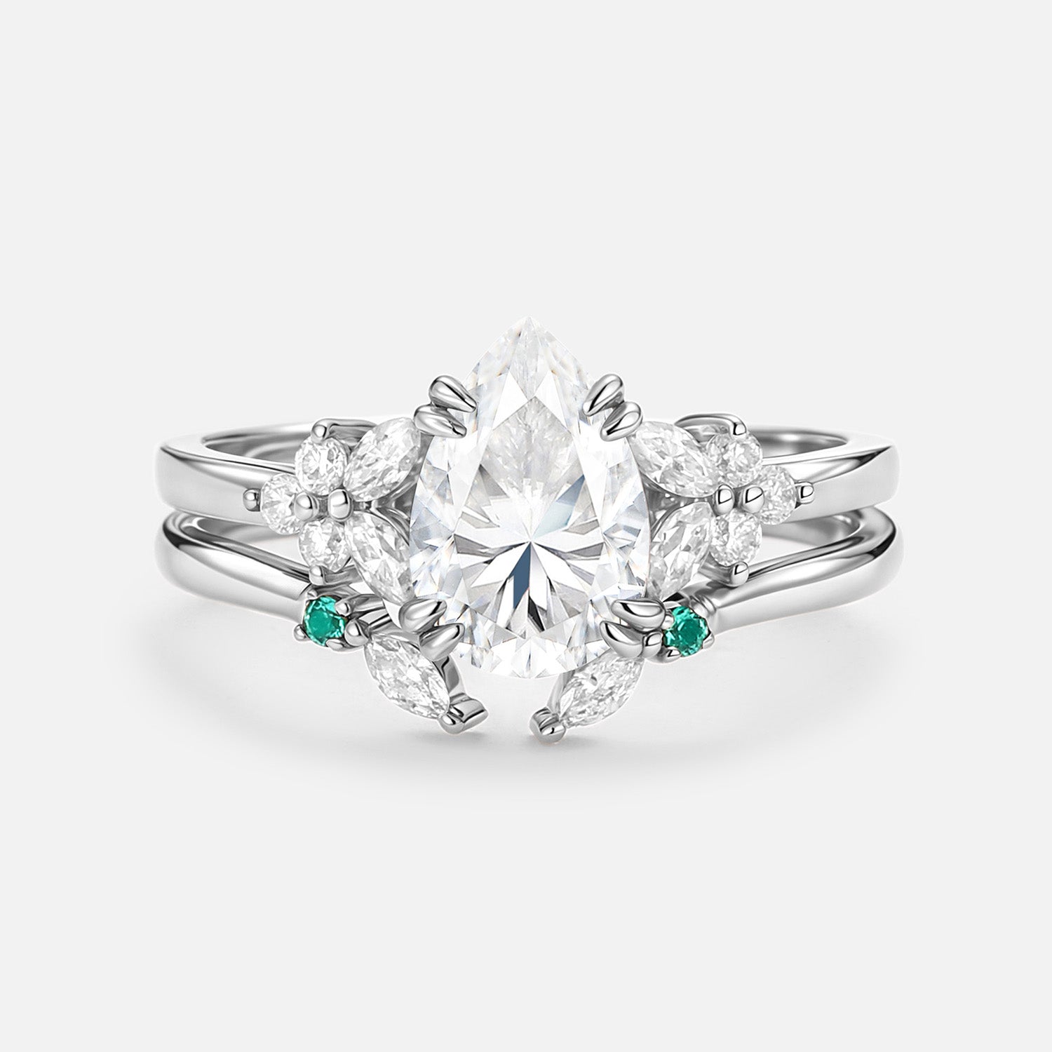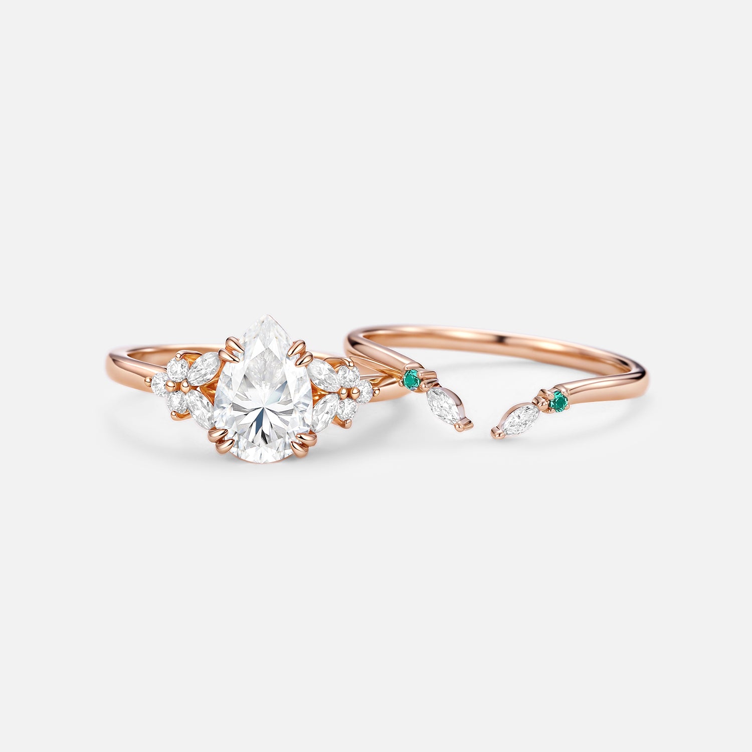 Cluster Pear Shaped Moissanite Chevron Gold Ring Set 2pcs - Anya