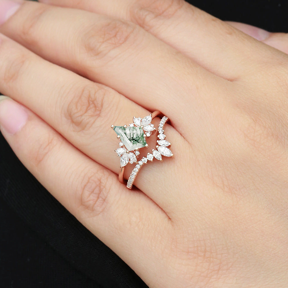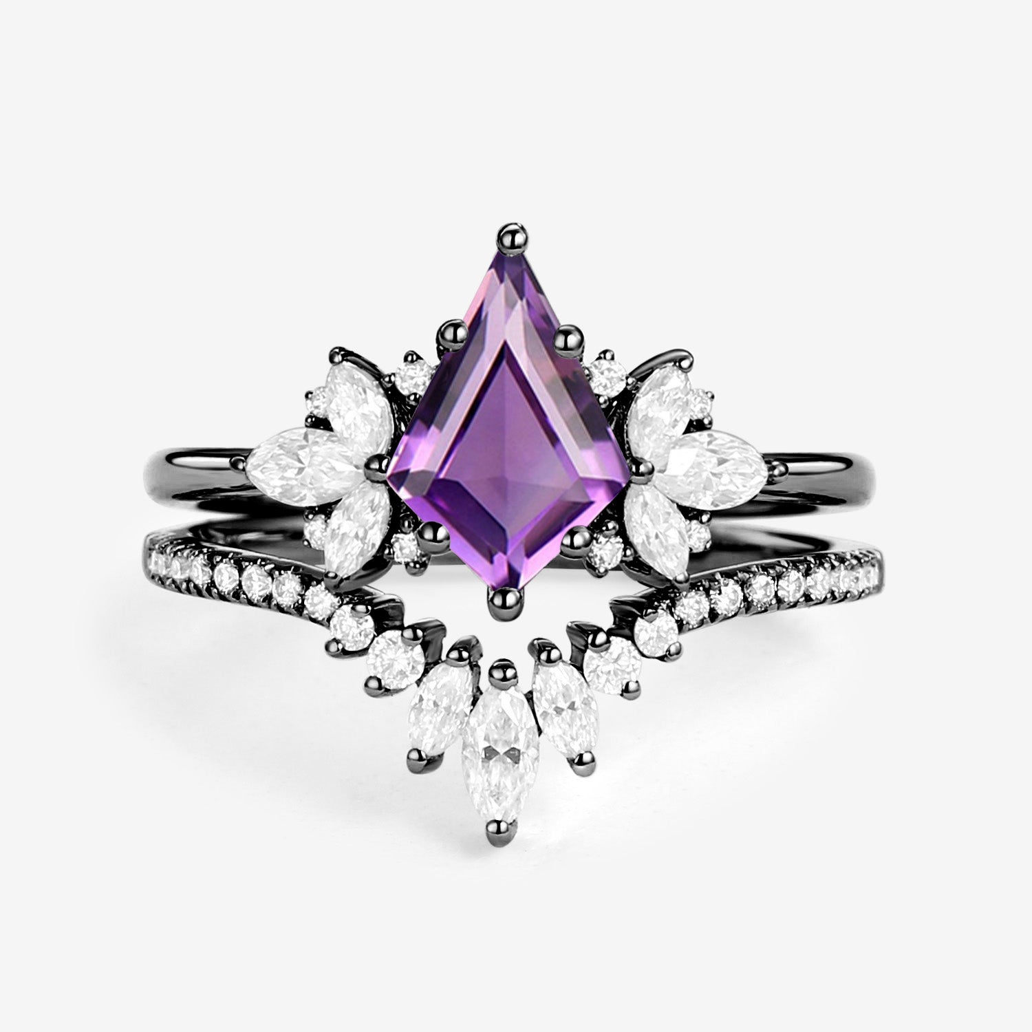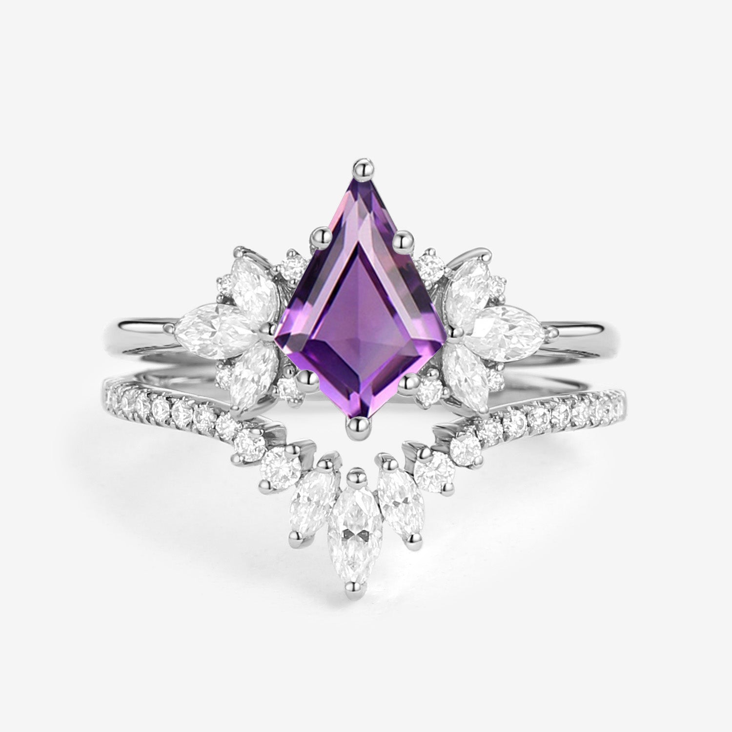 Fairy Ring - Kite Cut Amethyst Butterfly Cluster Ring Set 2pcs