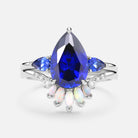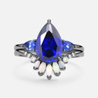 Pear Shaped Sapphire & Opal Three-stone Ring Set 2pcs