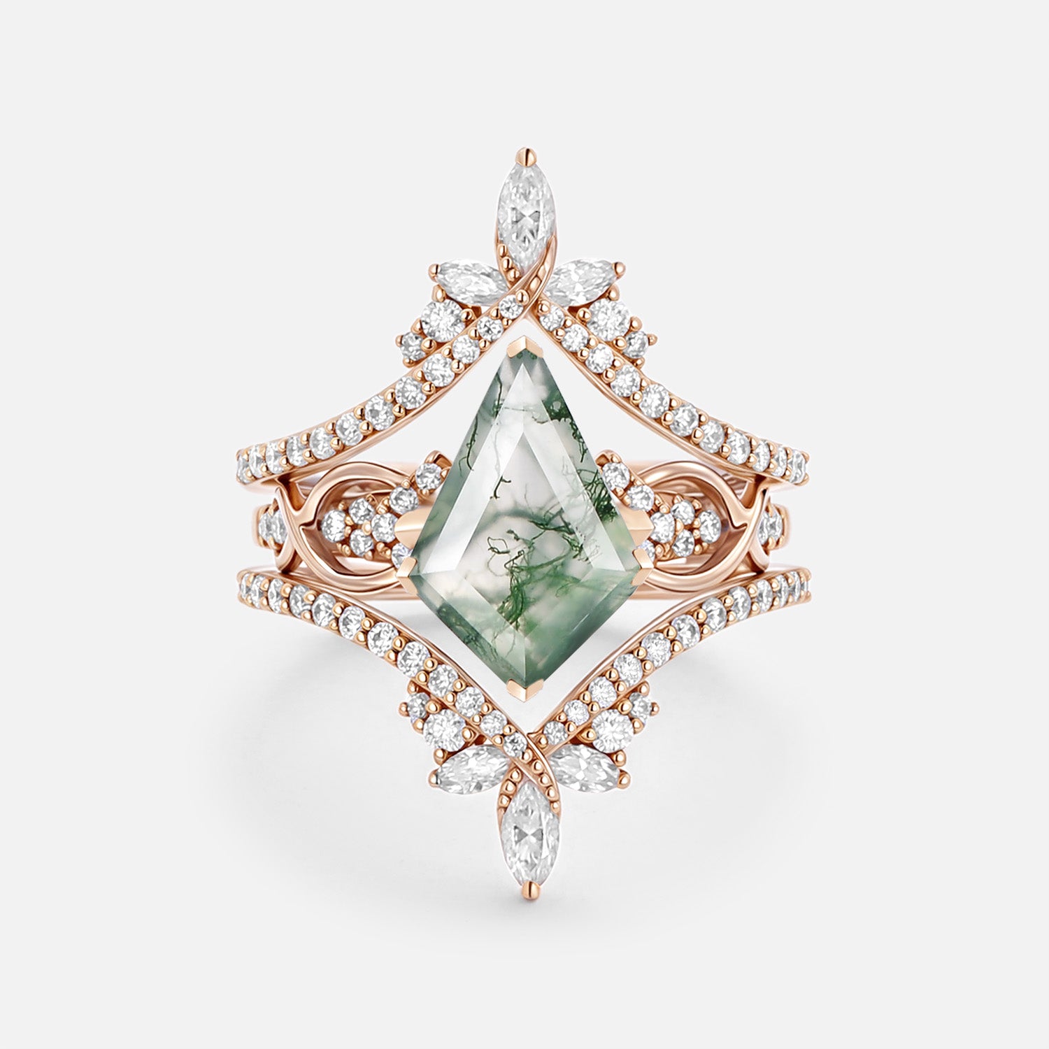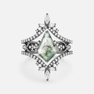 Infinity Kite Cut Moss Agate Cluster Cage Ring Set - Kest