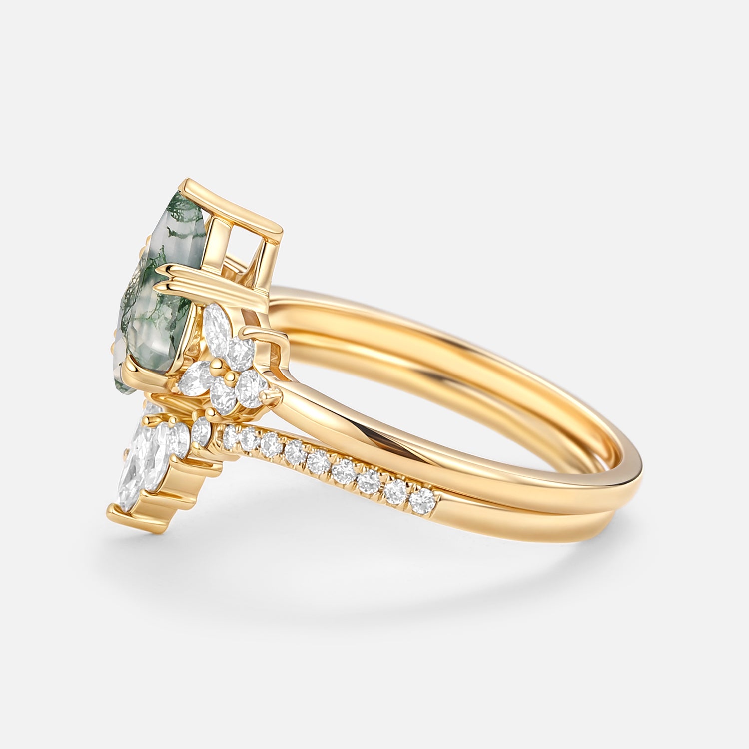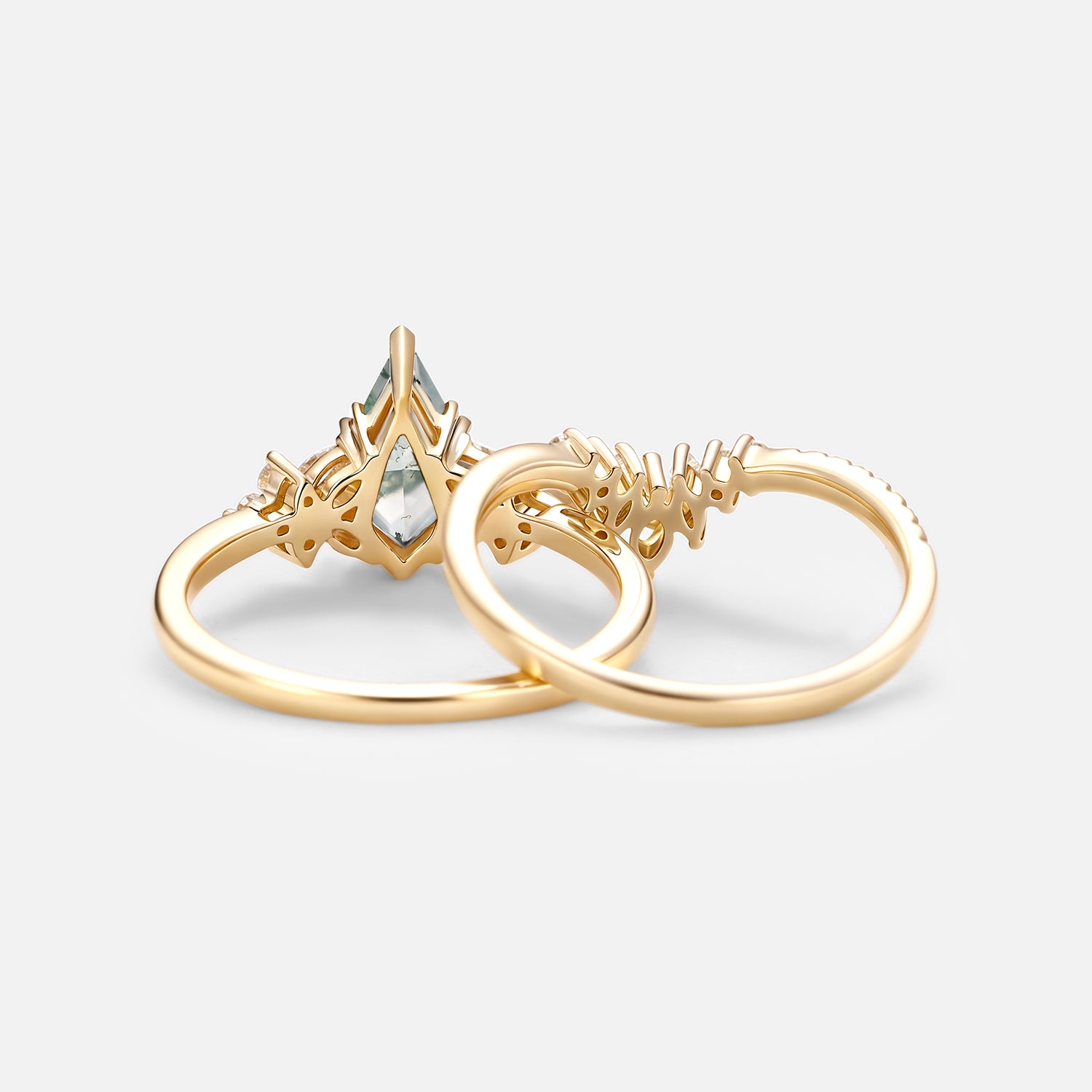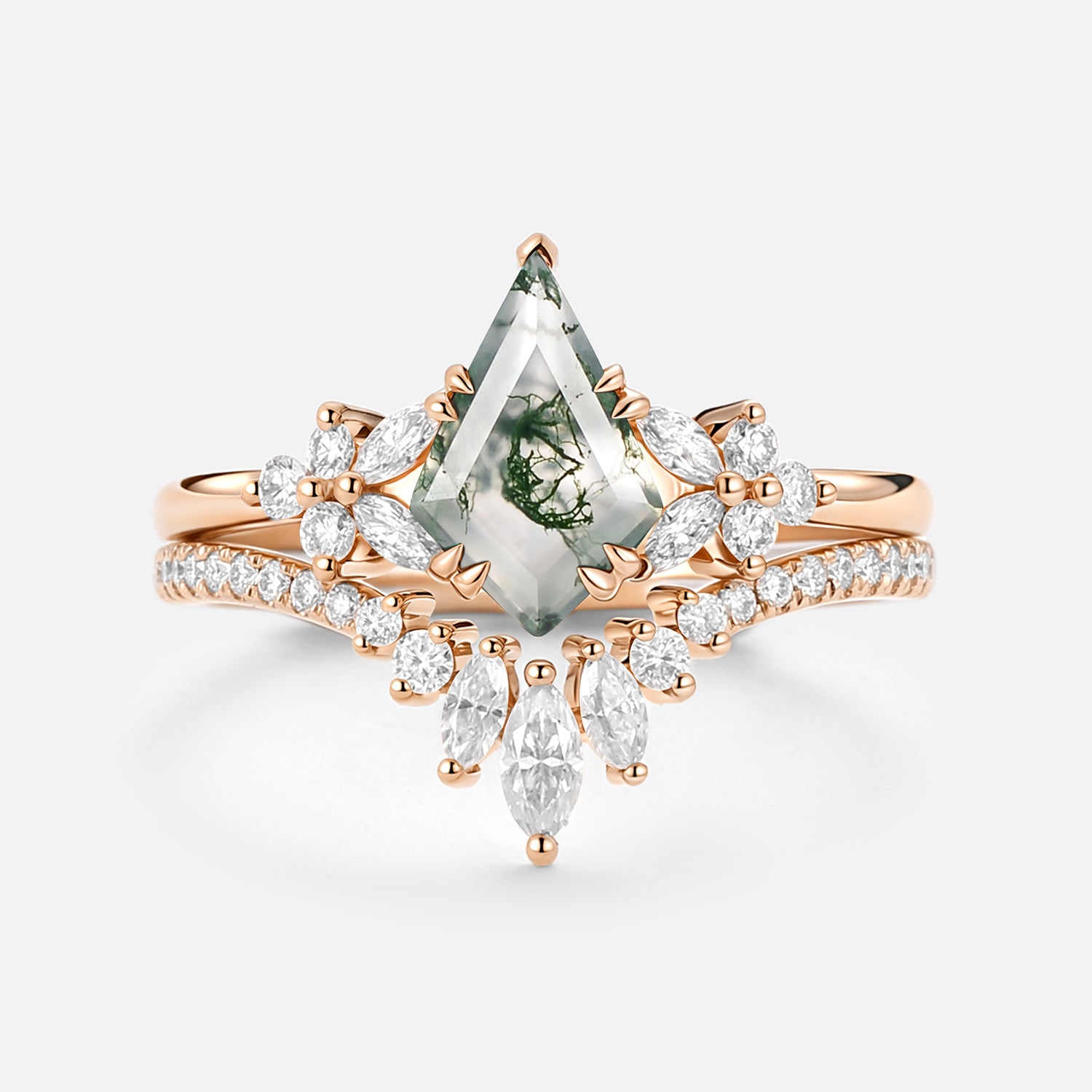 Kite Cut Moss Agate Cluster Engagement Ring Set 2pcs - Sora