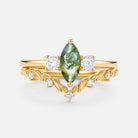 Marquise Cut Moss Agate Leafy Engagement Ring Sets 2pcs - Penny