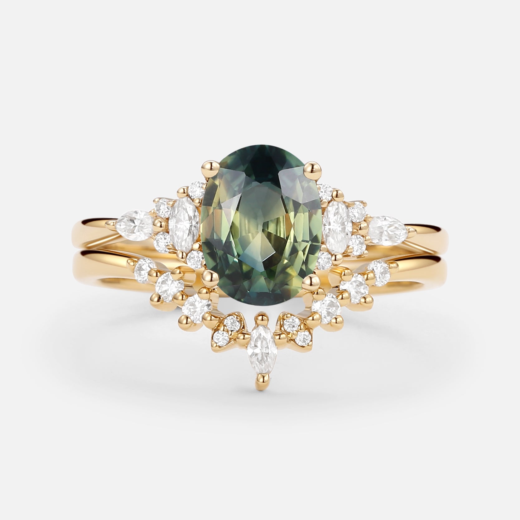 Oval Cut Teal Sapphire Ring Set 2pcs - Freya